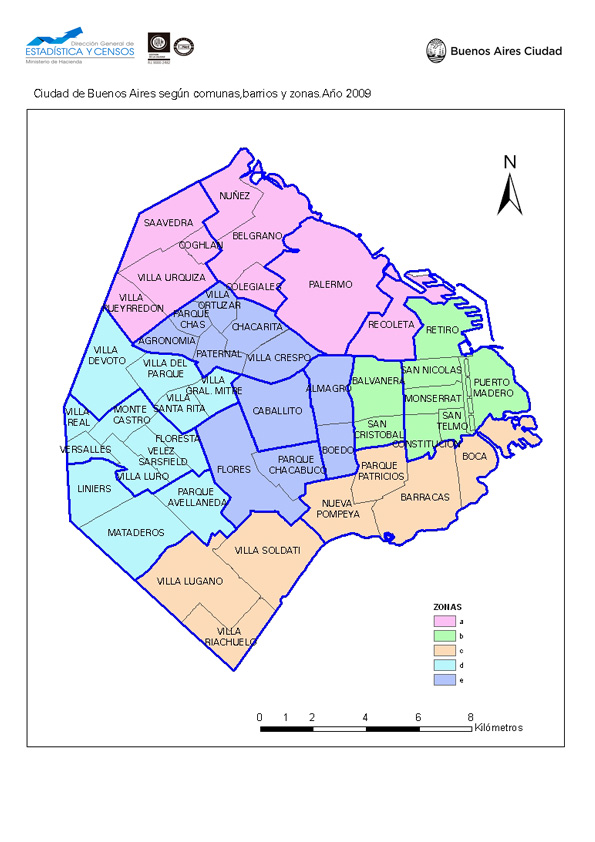 Mapa de la Ciudad de Buenos Aires según comunas, barrios y zonas. Año 2009