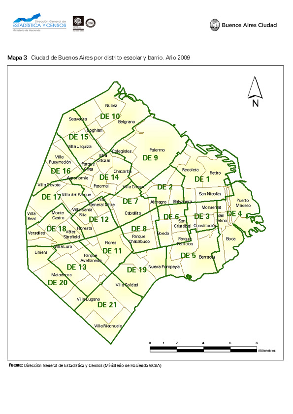 Mapa de la Ciudad de Buenos Aires por distrito escolar y barrio. Año 2009