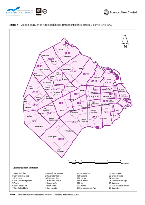 Mapa de la Ciudad de Buenos Aires por circunscripción electoral y barrio. Año 2009