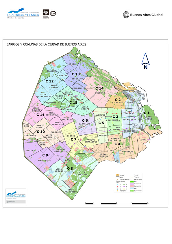 Mapa de Comunas y barrios de la ciudad de Buenos Aires
