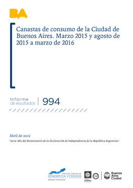 • Título: Canastas de consumo de la Ciudad de Buenos Aires. Marzo 2015 y agosto de 2015 a marzo de 2016