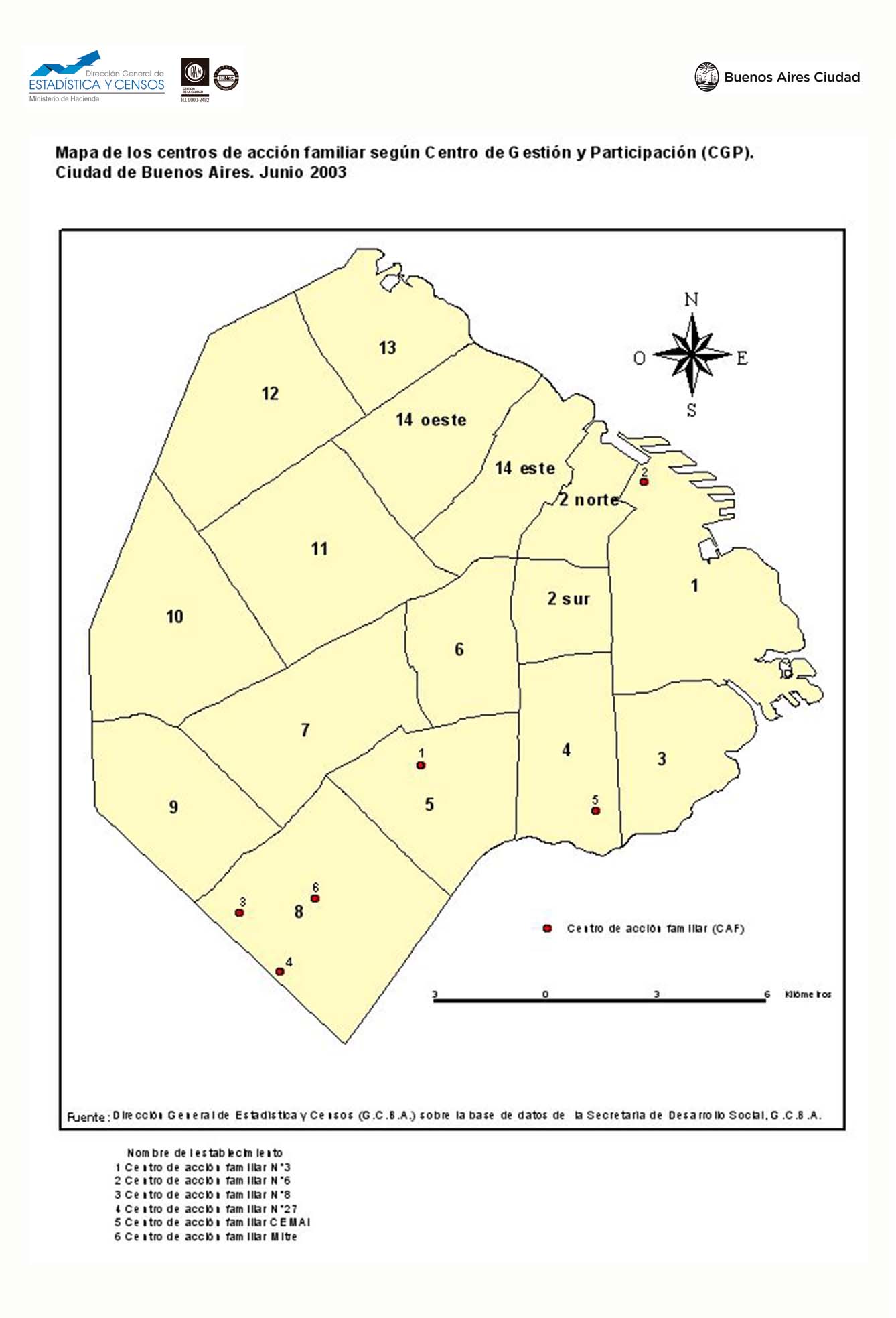 Mapa de centros de acción familiar según Centro de Gestión y Participación (CGP). Ciudad de Buenos Aires. Junio 2003