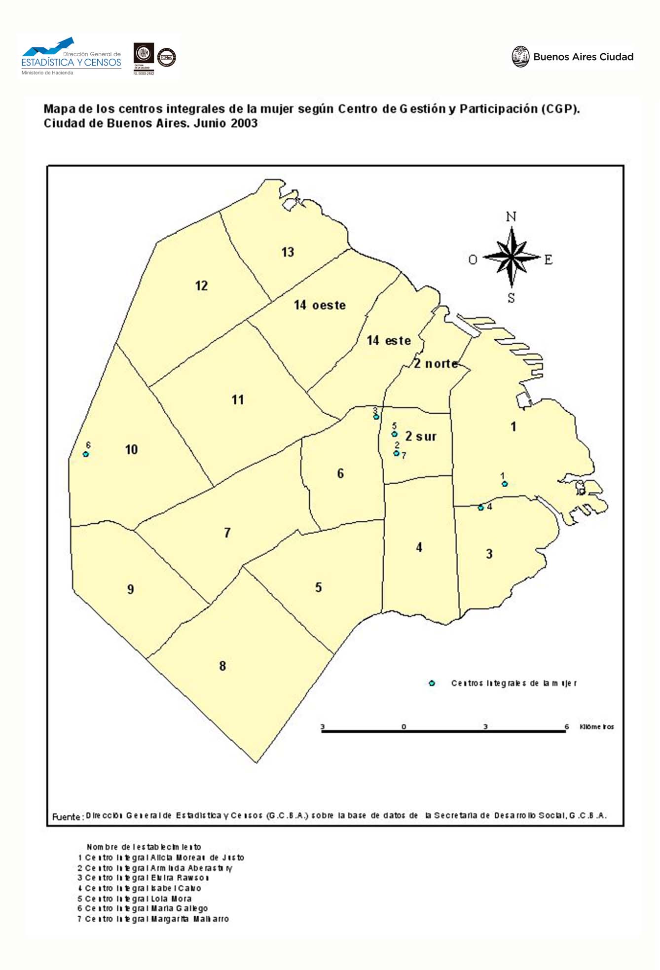 Mapa de los centros integrales de la mujer según Centro de Gestión y participación (CGP). Ciudad de Buenos Aires. Junio 2003.