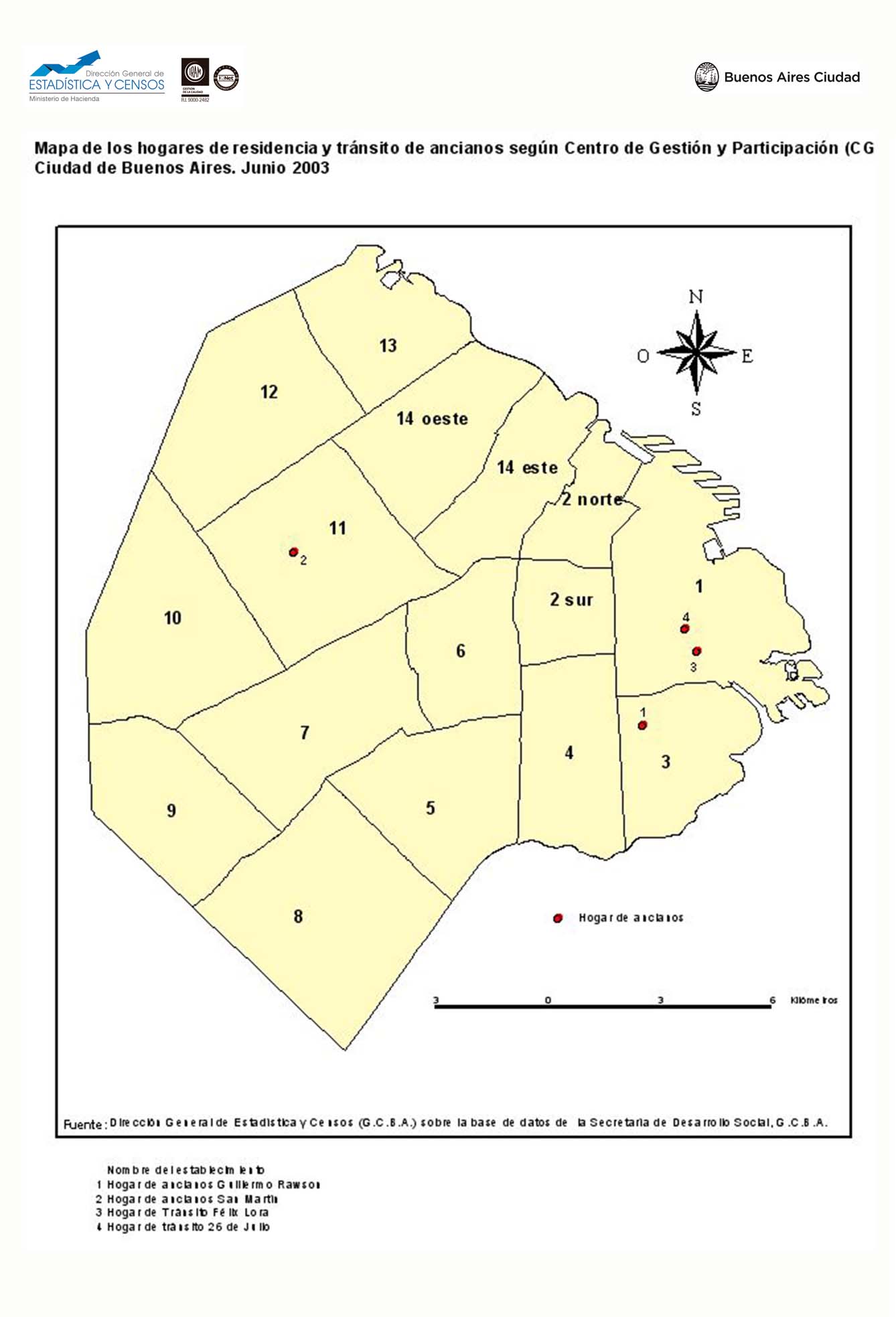 Mapa de los hogares de residencia y tránsito de ancianos según Centro de Gestión y Participación (CGP). Ciudad de Buenos Aires. Junio 2003