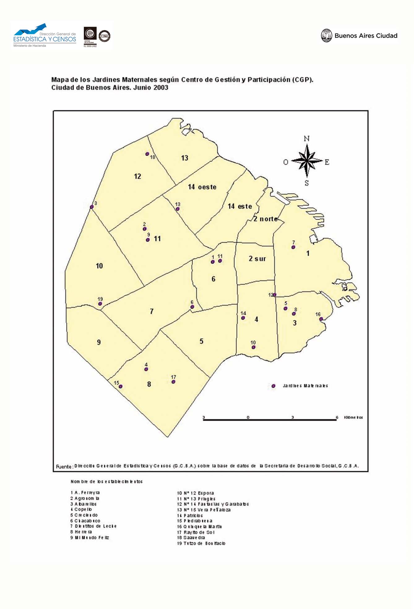Mapa de los Jardines Maternales según Centro de Gestión y Participación (CGP). Ciudad de Buenos Aires. Junio 2003