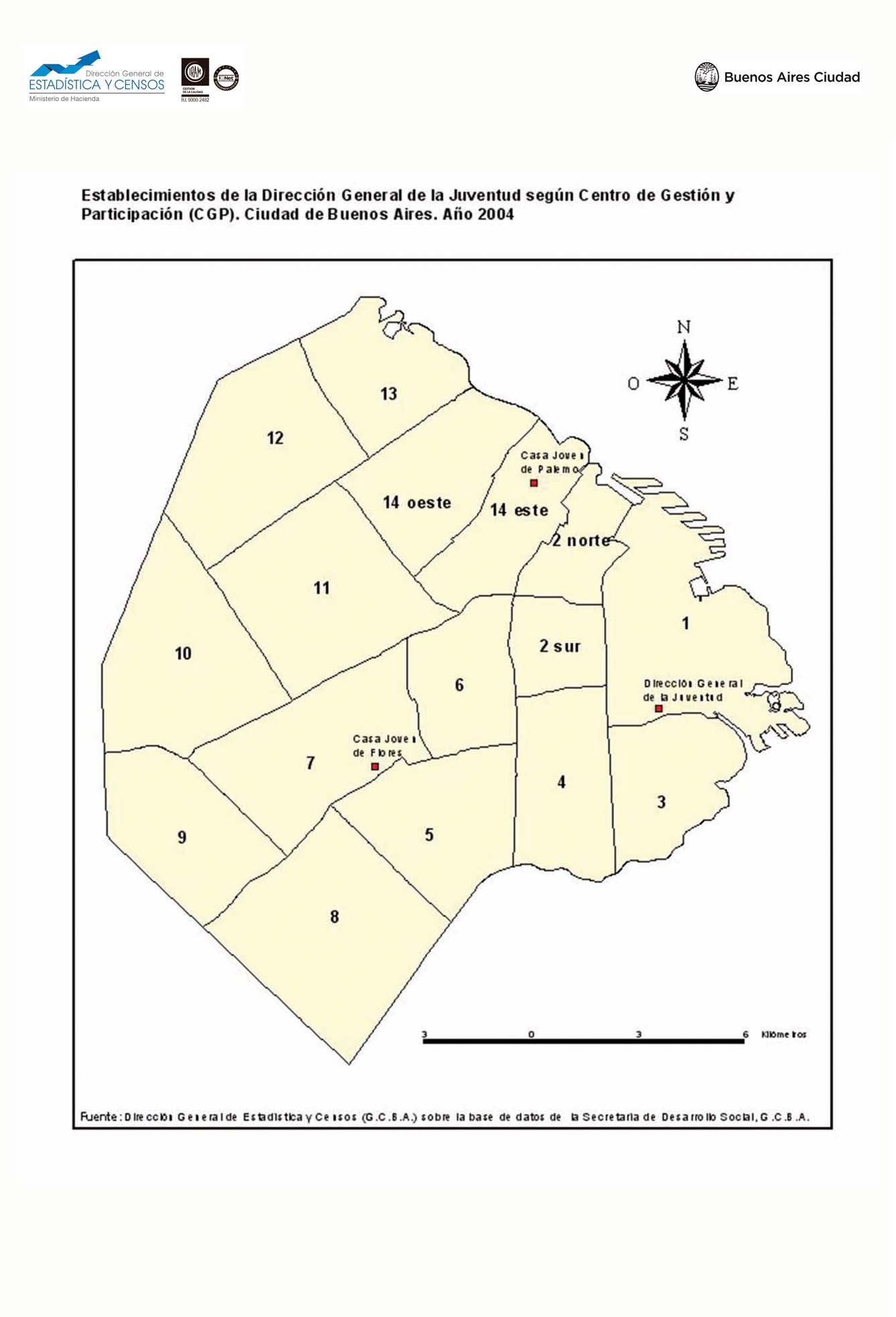 Establecimientos de la Dirección General de la Juventud según Centro de Gestión y Participación (CGP). Ciudad de Buenos Aires. Año 2004