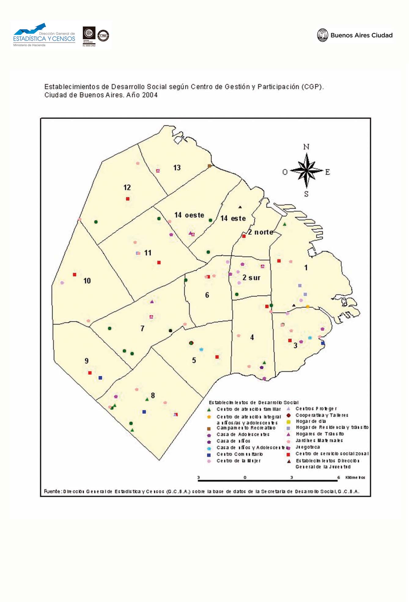 Establecimientos de Desarrollo social según Centro de Gestión y Participación (CGP). Ciudad de Buenos Aires. Año 2004