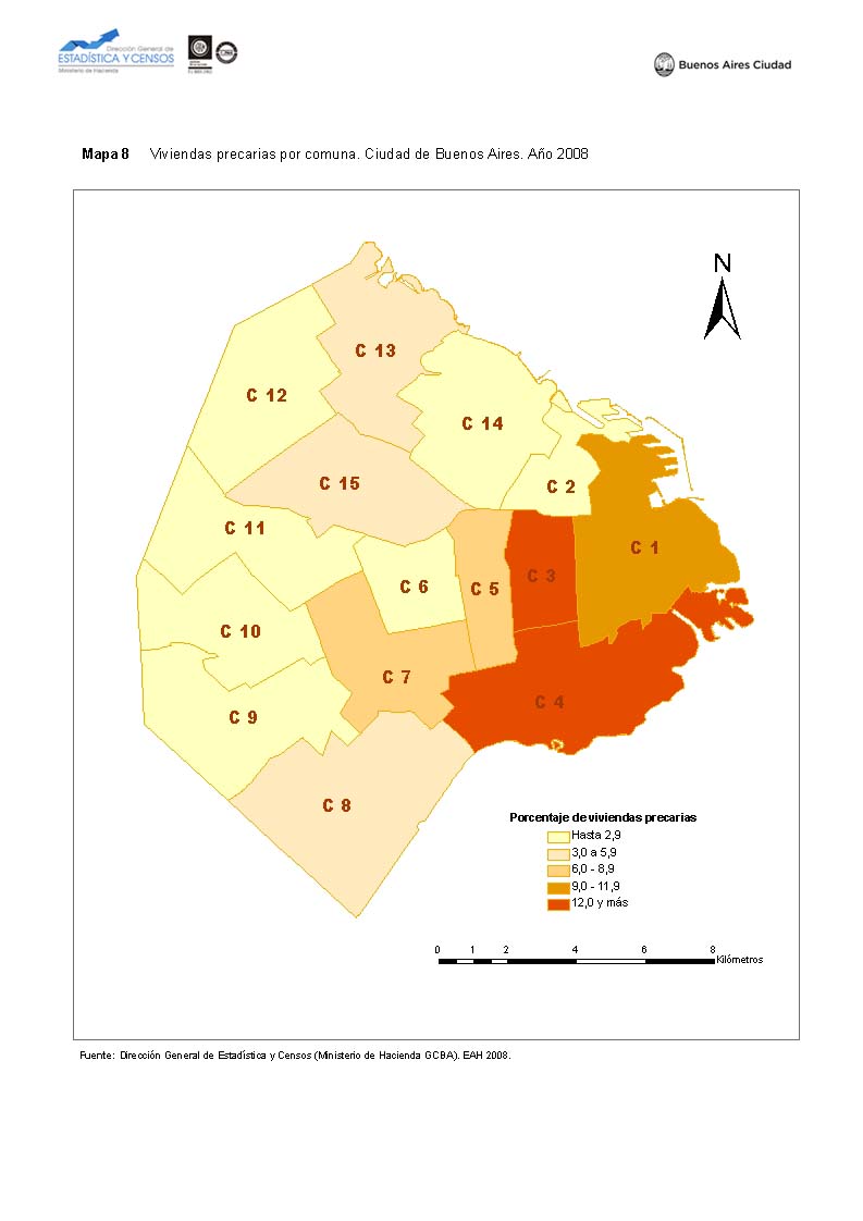 Viviendas precarias por comuna. Ciudad de Buenos Aires. Año 2008