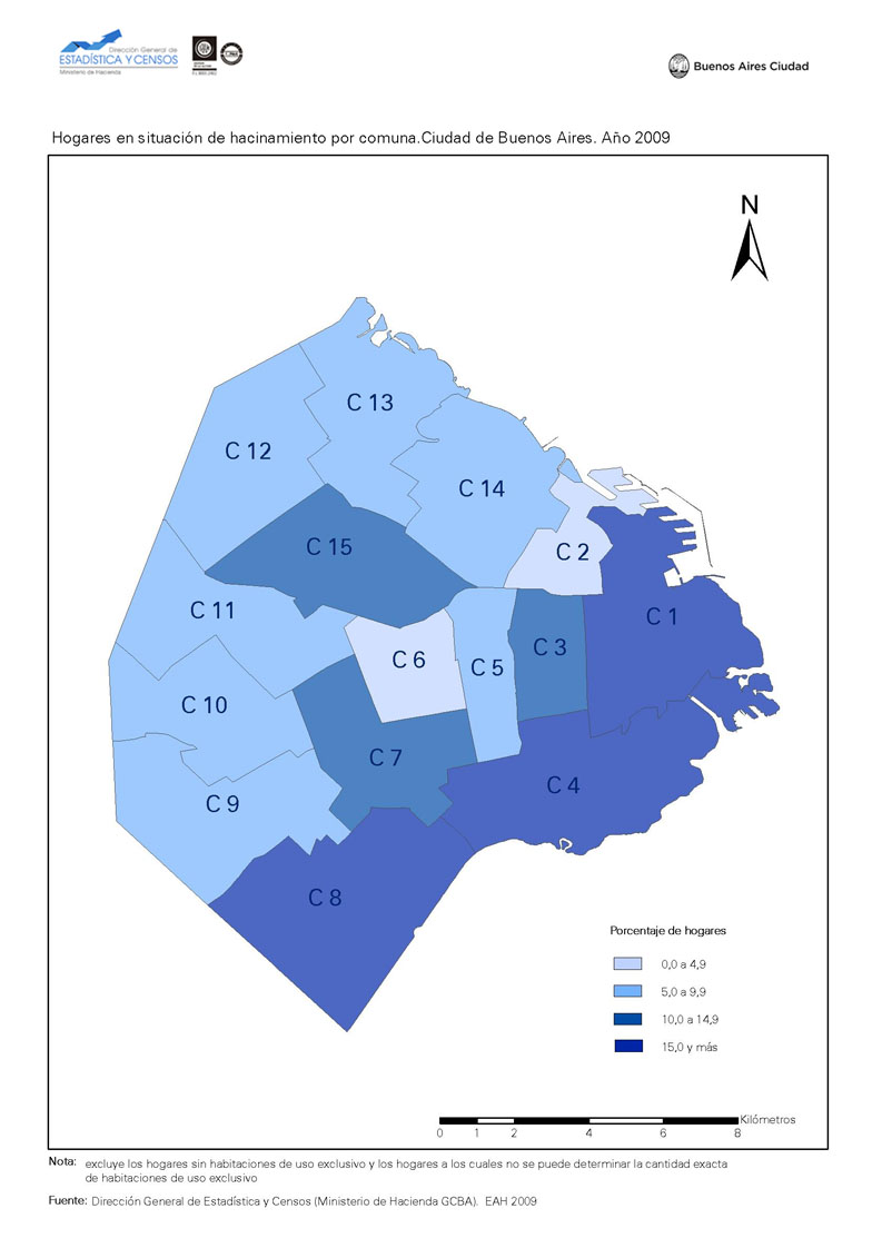 Hogares en situación de hacinamiento por comuna. Ciudad de Buenos Aires 2009
