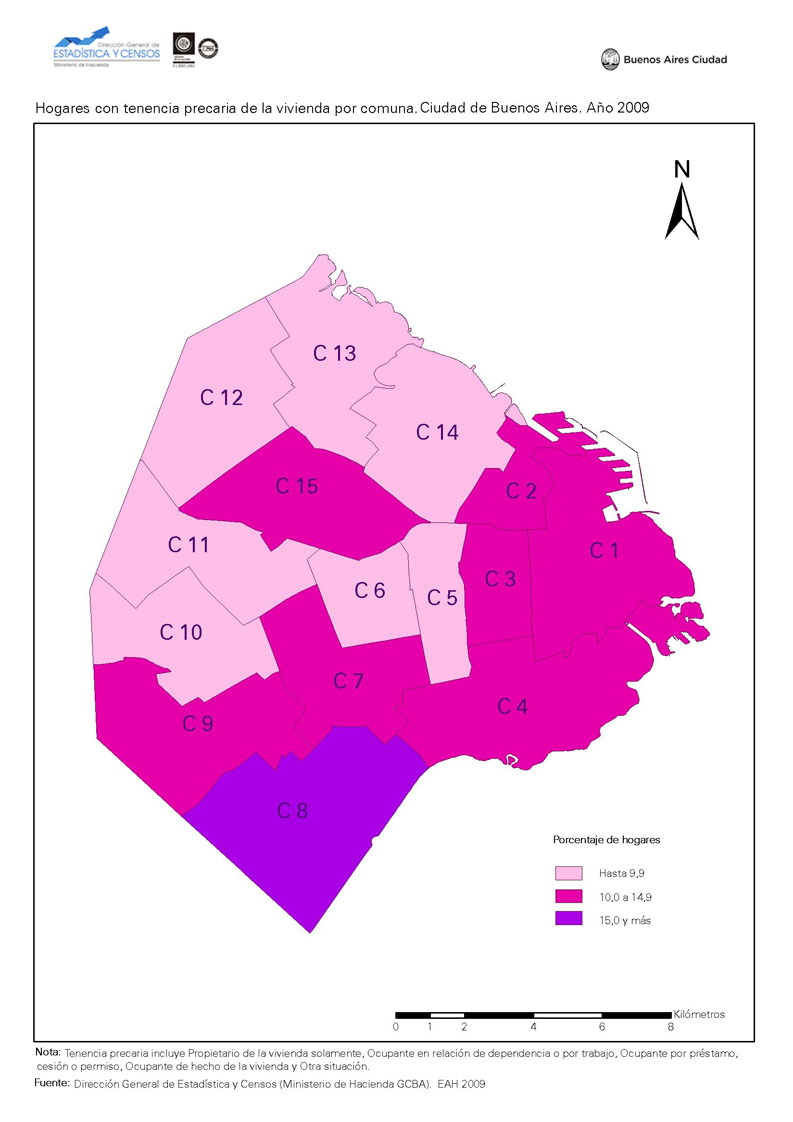 Hogares con tenencia precaria de la vivienda por comuna. Ciudad de Buenos Aires. Año 2009