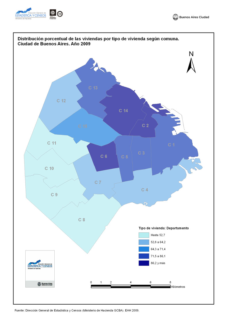 Distribución porcentual de las viviendas por tipo de vivienda: departamento según comuna. Ciudad de Buenos Aires 2009