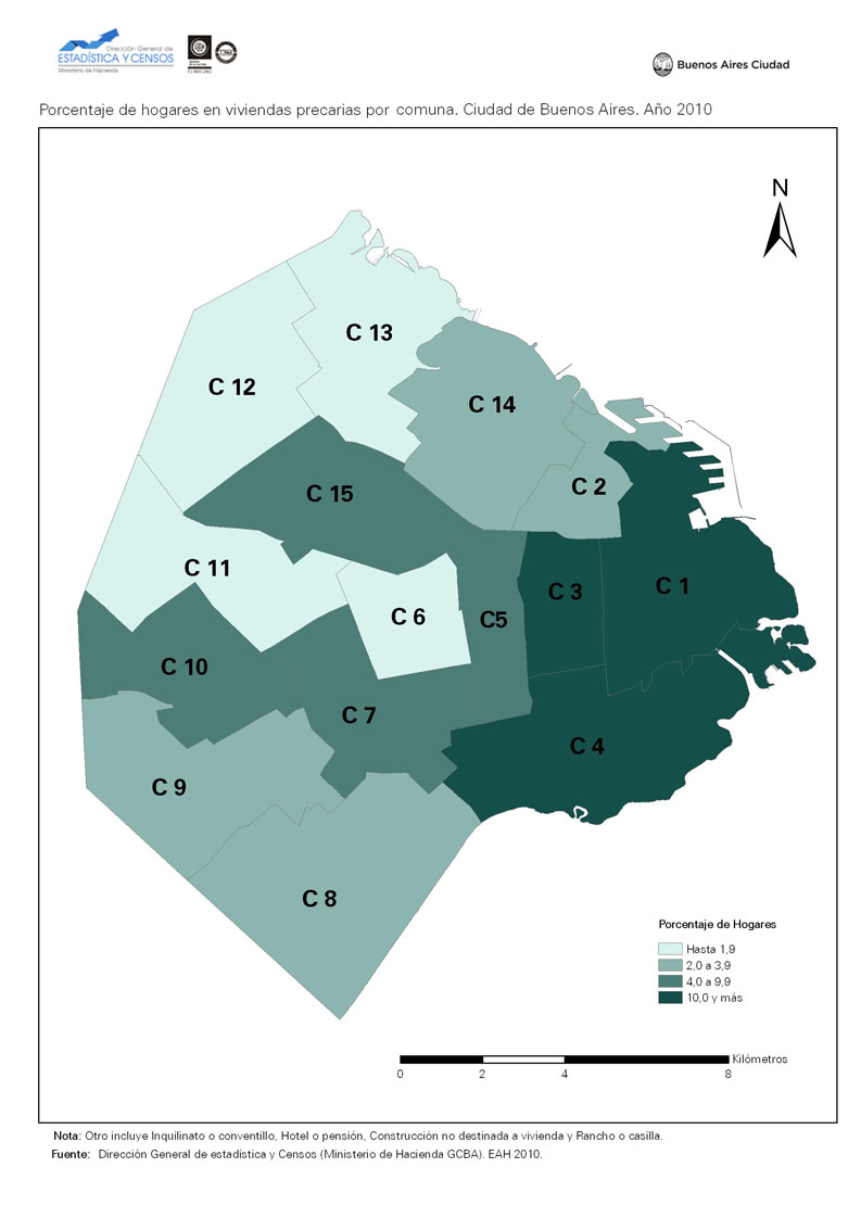 Porcentajes de hogares en viviendas precarias por comuna. Ciudad de Buenos Aires. Año 2010