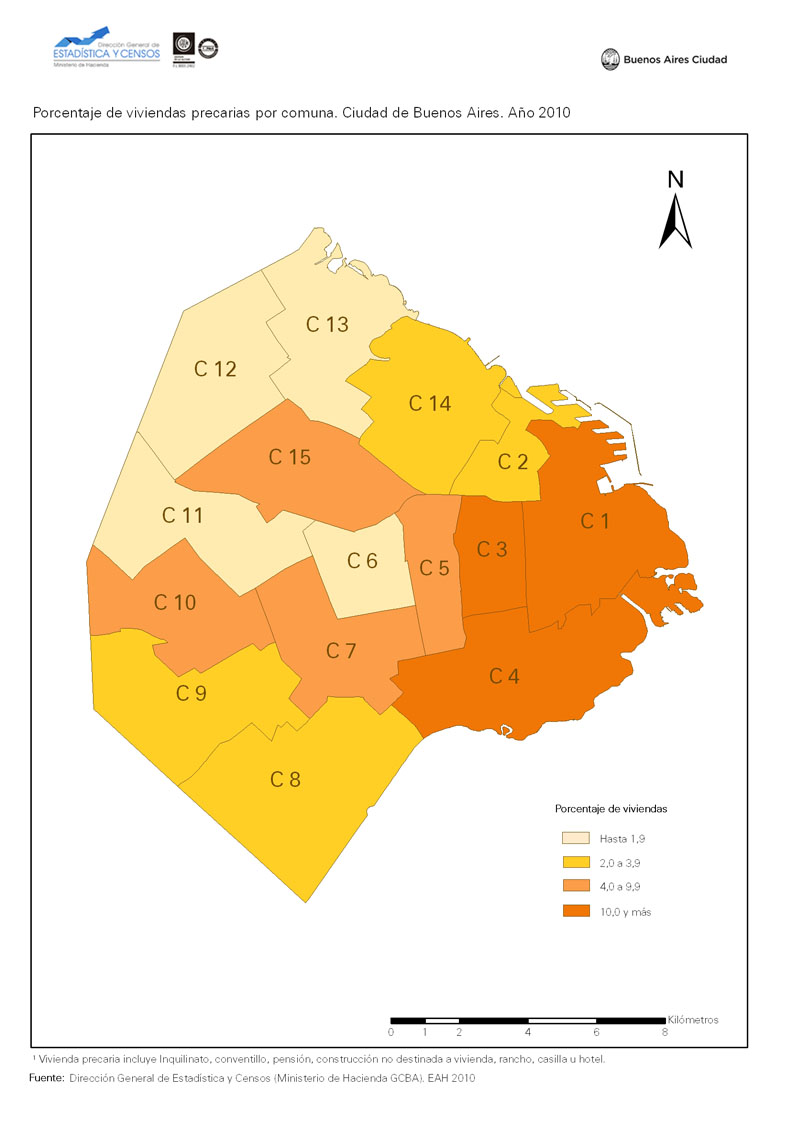 Porcentajes de viviendas precarias por comuna. Ciudad de Buenos Aires. Año 2010