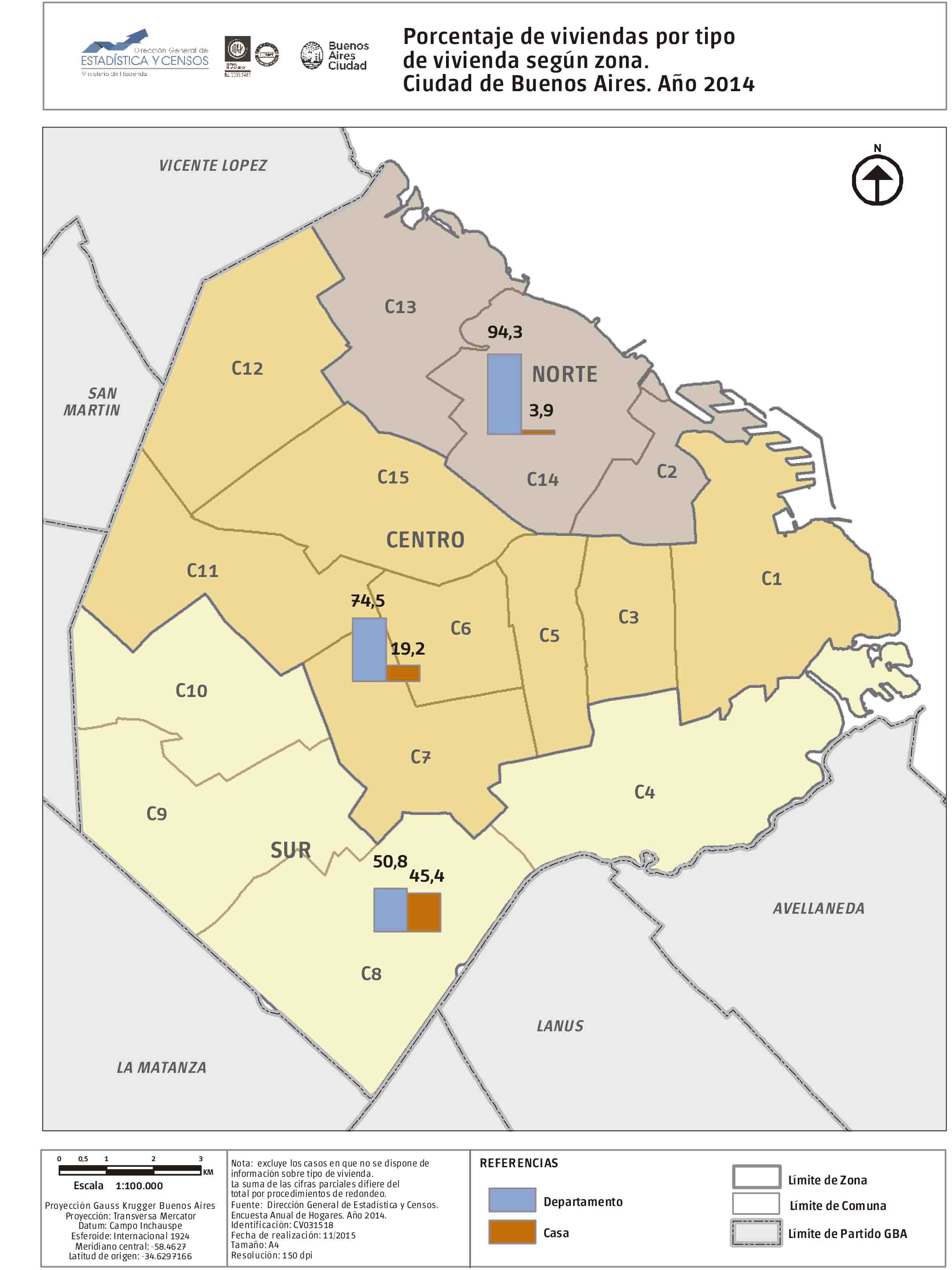 Porcentaje de viviendas por tipo de vivienda según zona EAH. Ciudad de Buenos Aires. Año 2014