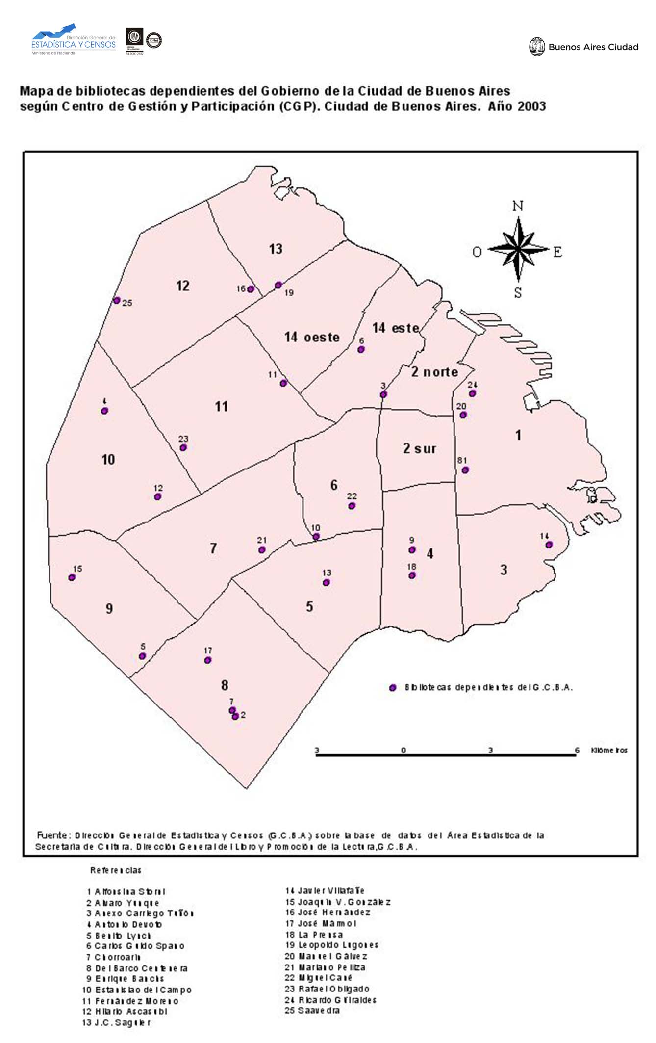 Mapa de bibliotecas dependientes del Gobierno de la Ciudad de Buenos Aires según Centro de Gestión y Participación. Ciudad de Buenos Aires. Año 2003