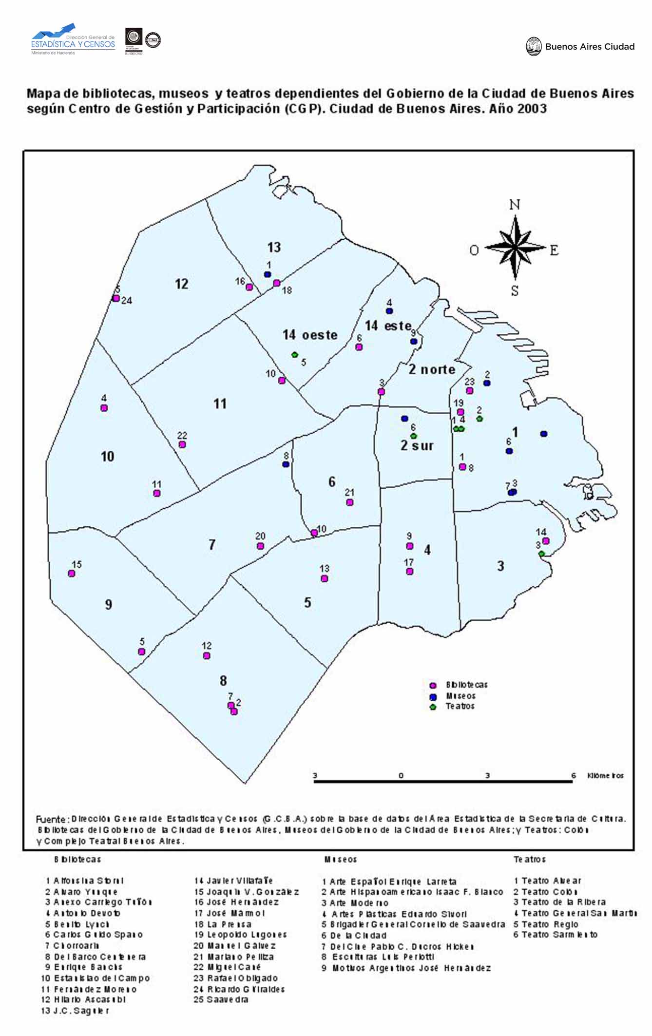 Mapa de bibliotecas, museos y teatros dependientes del Gobierno de la Ciudad de Buenos Aires. Año 2003