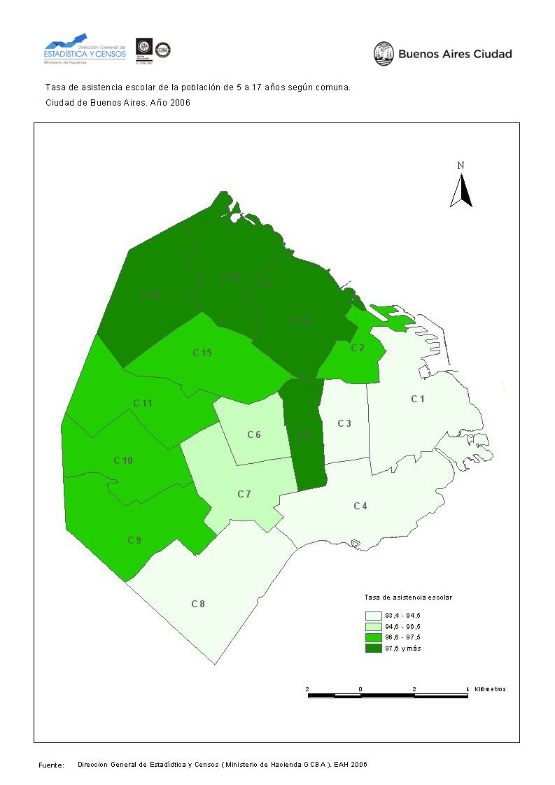 Tasa de asistencia escolar de la población de 5 a 17 años según comuna. Ciudad de Buenos Aires. Año 2006