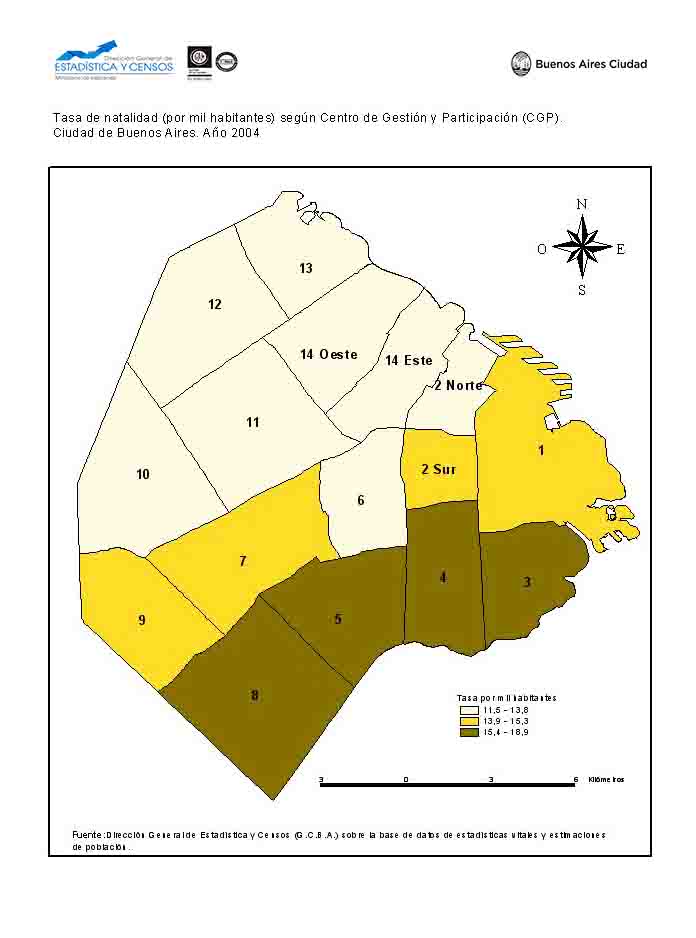 Tasa de natalidad (por mil habitantes) según Centro de Gestión y Participación. Ciudad de Buenos Aires. Año 2004