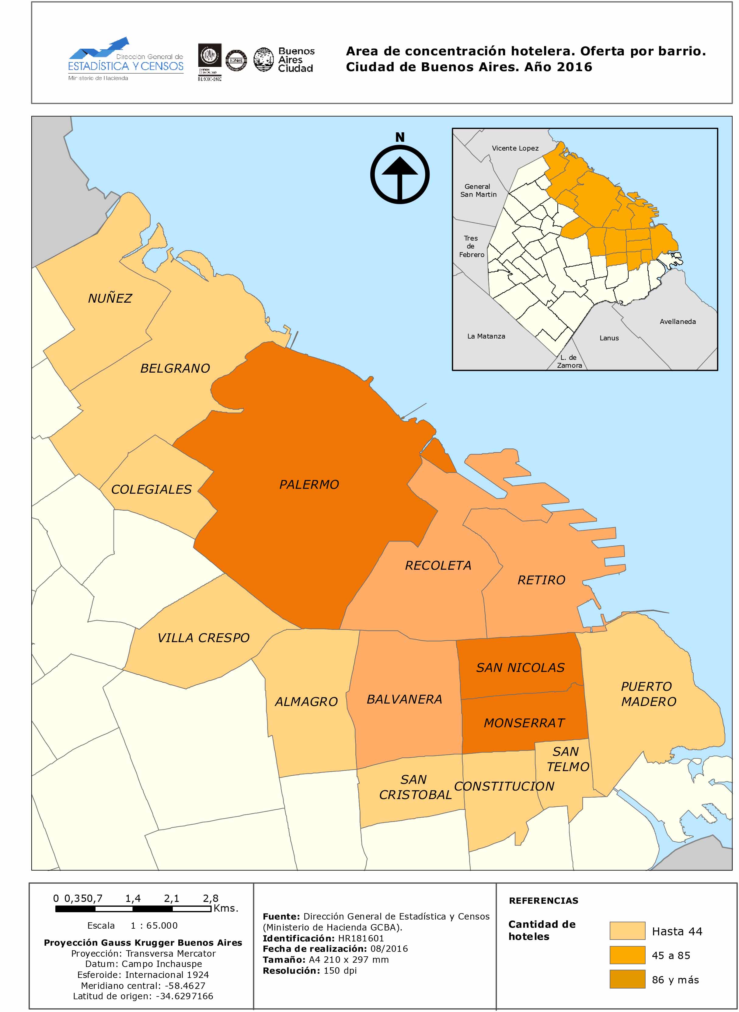 Área de concentración hotelera. Oferta por barrio. Ciudad de Buenos Aires. Año 2016