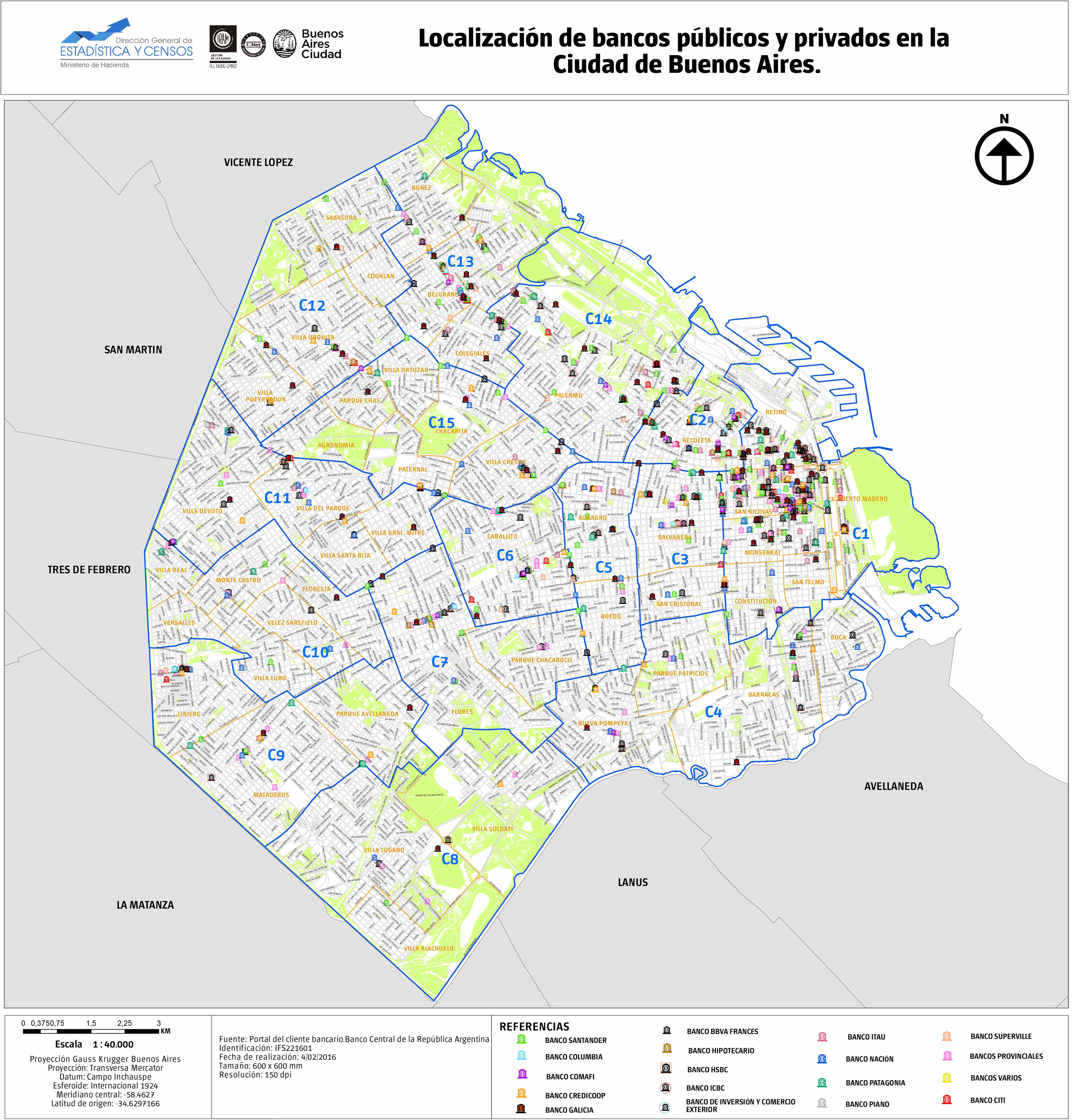Localización de bancos públicos y privados en la Ciudad de Buenos Aires.