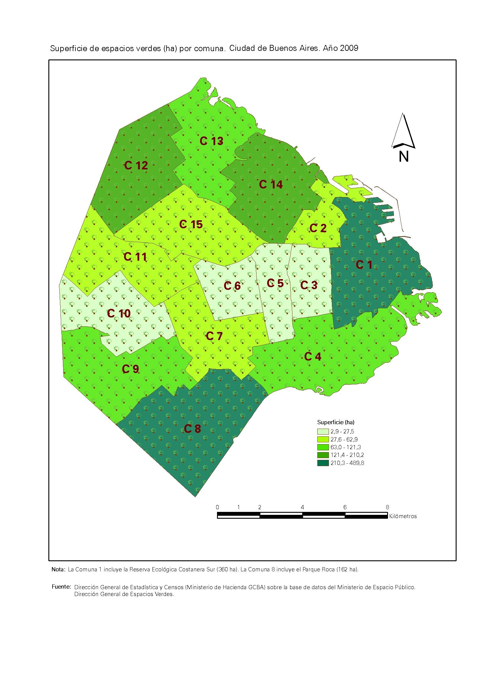 Superficie de espacios verdes (ha) por comuna. Ciudad de Buenos Aires. Año 2009