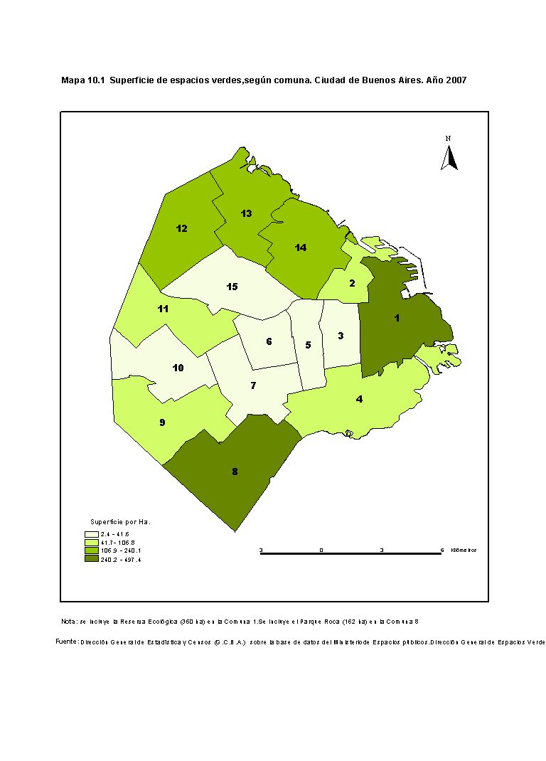 Superficie de espacios verdes según comuna. Ciudad de Buenos Aires. Año 2007
