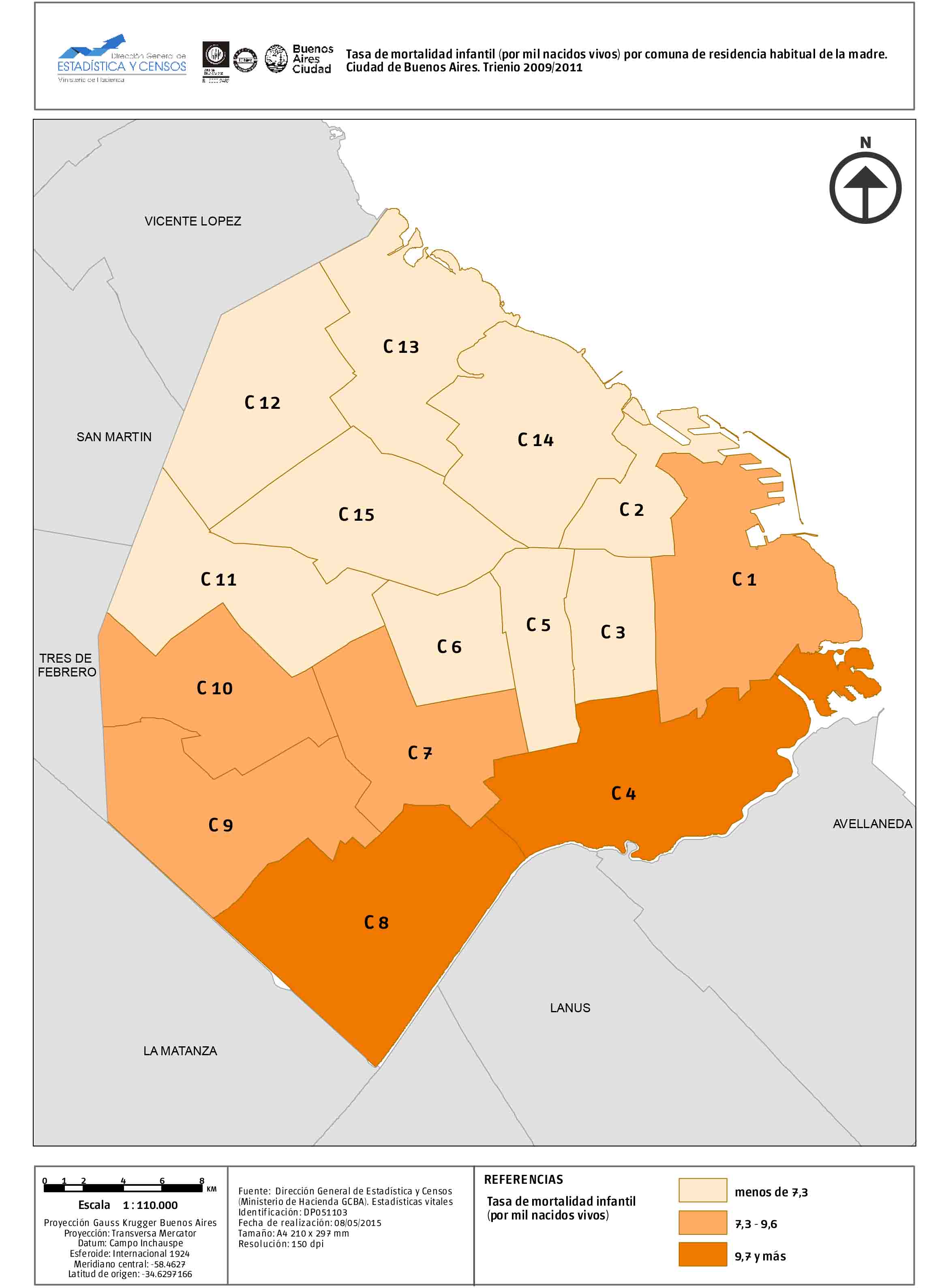 Tasa de mortalidad infantil (por mil nacidos vivos) por comuna de residencia habitual de la madre. Ciudad de Buenos Aires. Trienio 2009/2011