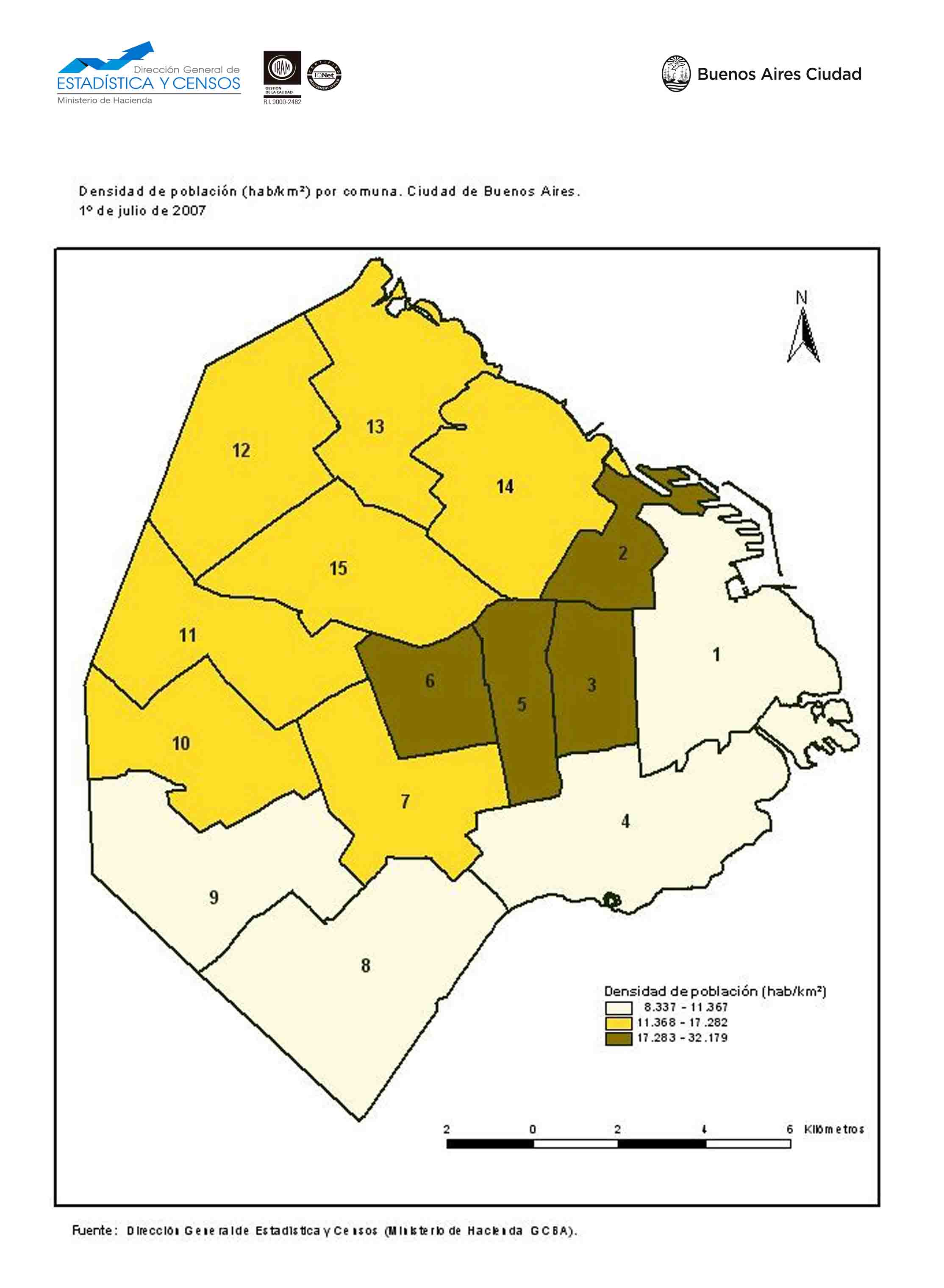 Densidad de población (hab/km2) por comuna. Ciudad de Buenos Aires. 1º julio 2007