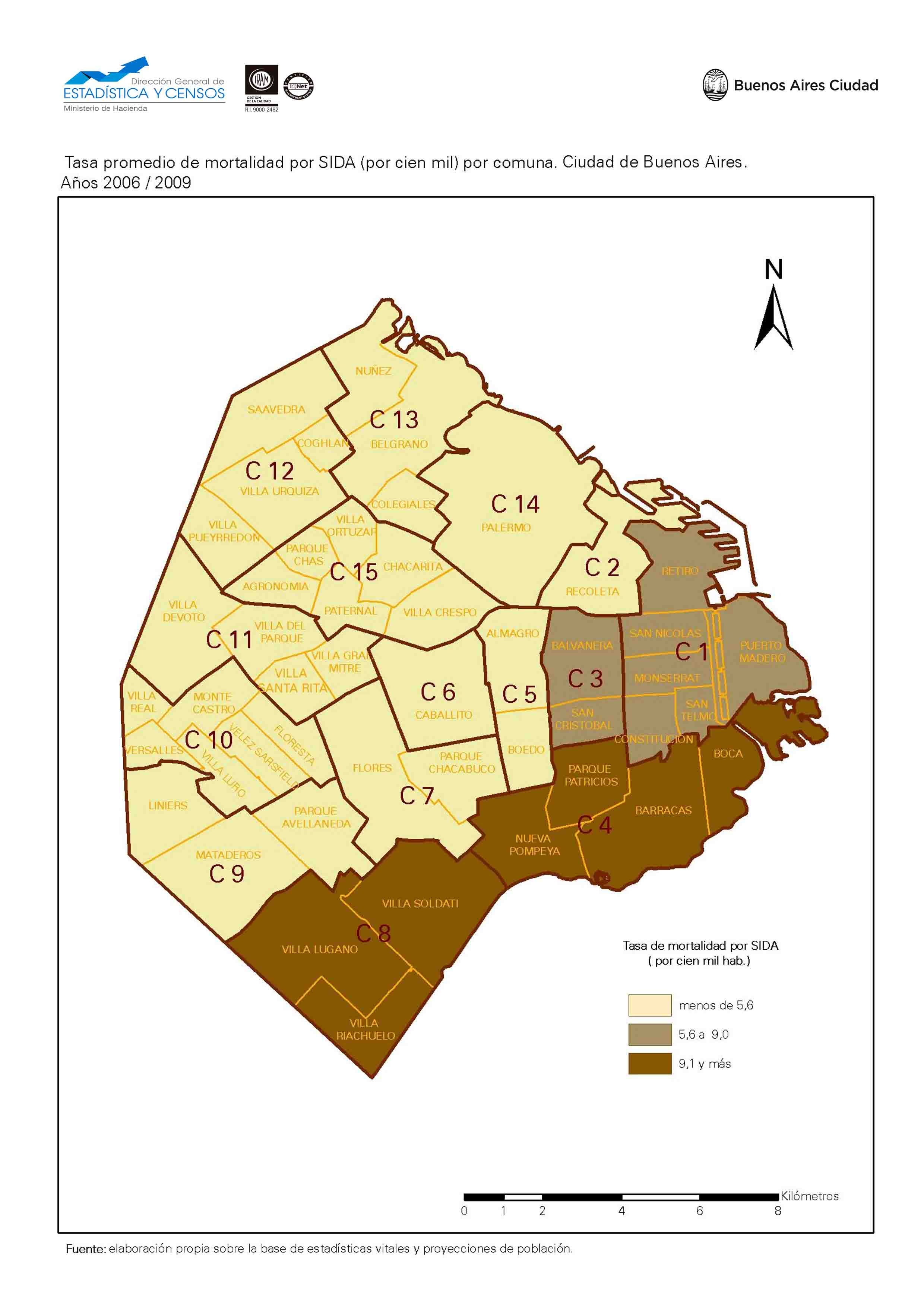 Tasa promedio de mortalidad por SIDA ( por cien mil ). Ciudad de Buenos Aires. Años 2006/2009