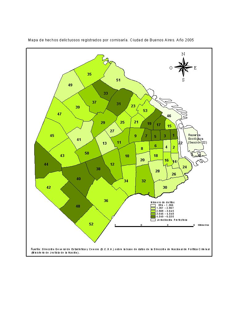 Mapa de hechos delictuosos registrados por comisaría. Ciudad de Buenos Aires. Año 2005