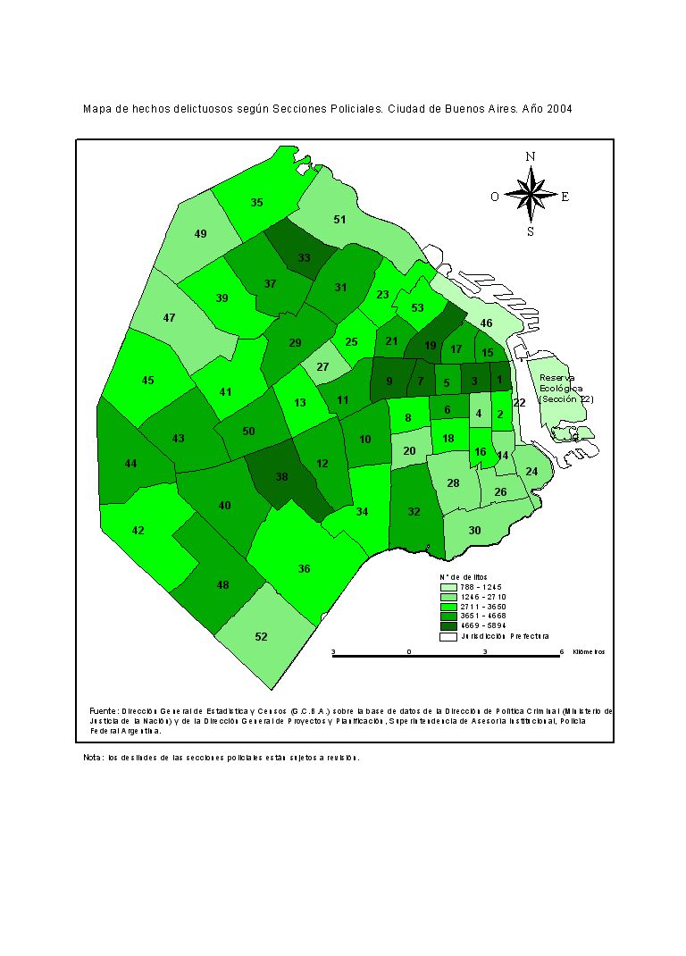 Mapa de hechos delictuosos según Secciones Policiales. Ciudad de Buenos Aires. Año 2004