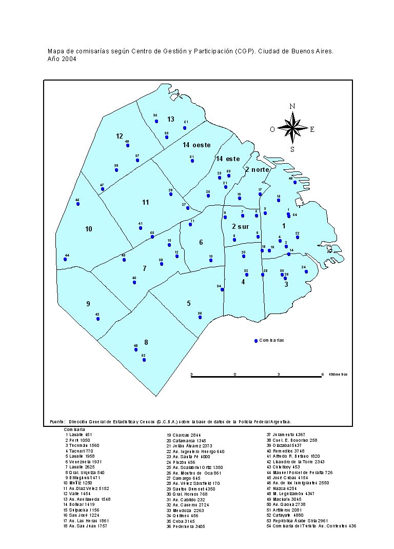 Mapa de comisarias según Centro de Gestión y Participación (CGP). Ciudad de Buenos Aires. Año 2004