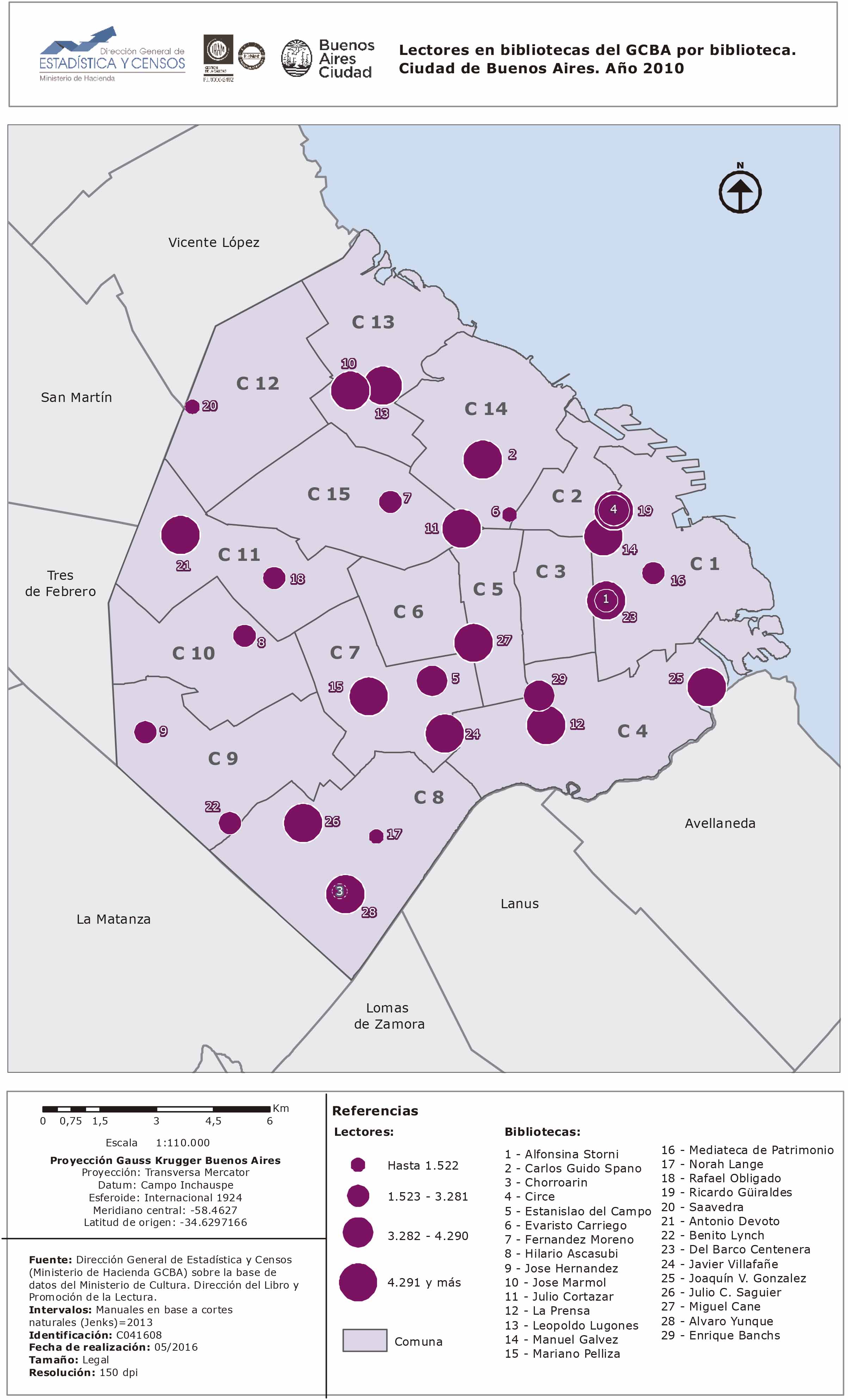 Lectores en bibliotecas del GCBA por biblioteca. Ciudad de Buenos Aires. Año 2010