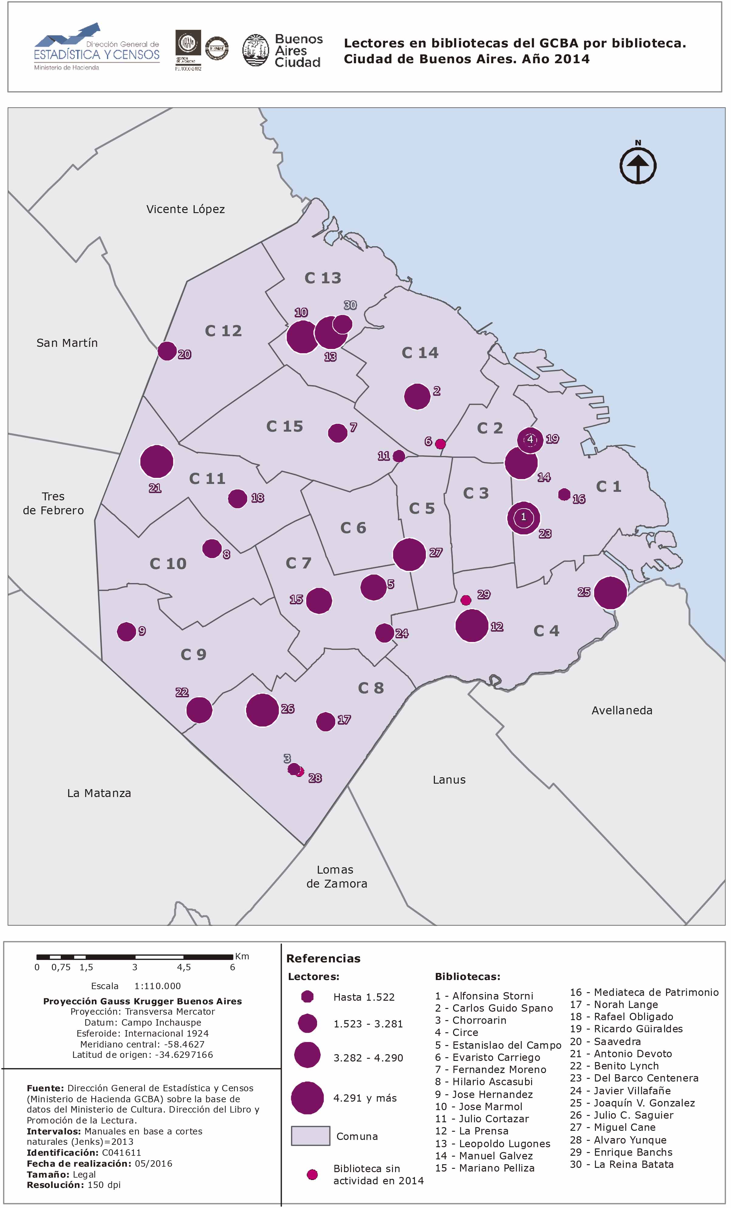 Lectores en bibliotecas del GCBA por biblioteca. Ciudad de Buenos Aires. Año 2014
