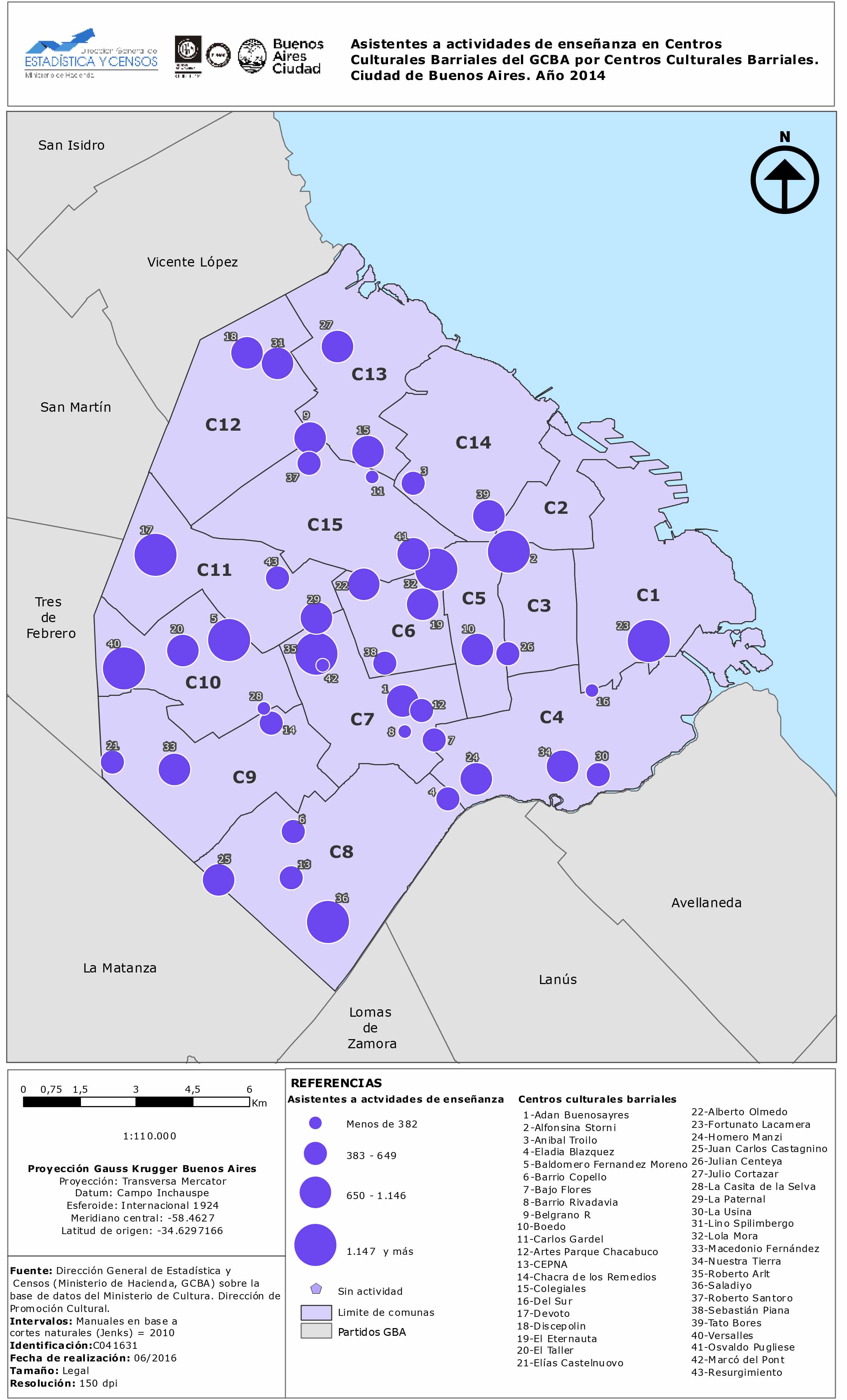 Asistentes a actividades de enseñanza en Centros Culturales Barriales del GCBA. Ciudad de Buenos Aires. Año 2014