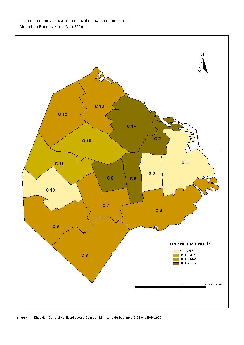Tasa neta de escolarización del nivel primario según comuna. Ciudad de Buenos Aires. Año 2006