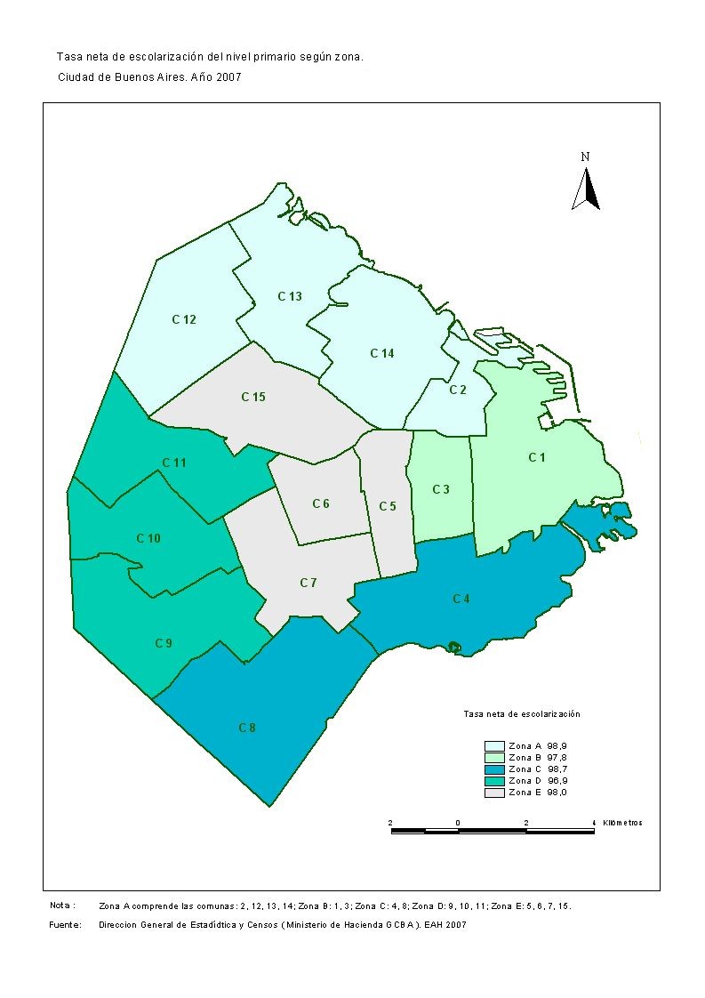 Tasa neta de escolarización del nivel primario según zona. Ciudad de Buenos Aires. Año 2007