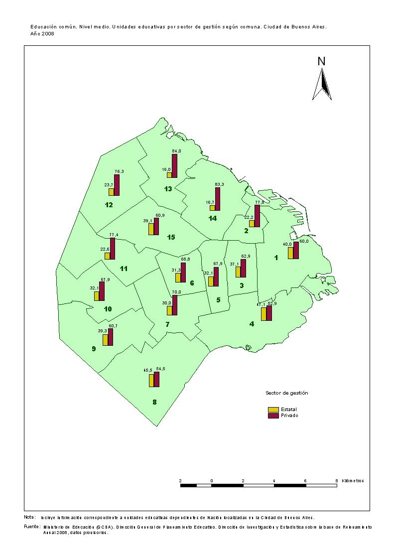 Educación común. Nivel medio. Unidades educativas por sector de gestión según comuna. Ciudad de Buenos Aires. Año 2008