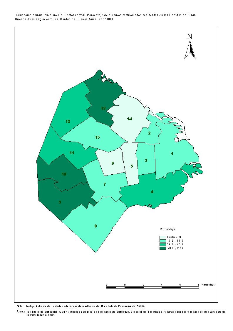 Educación común. Nivel medio. Sector estatal. Porcentaje de alumnos matriculados residentes en los partidos del Gran Buenos Aires. Año 2008