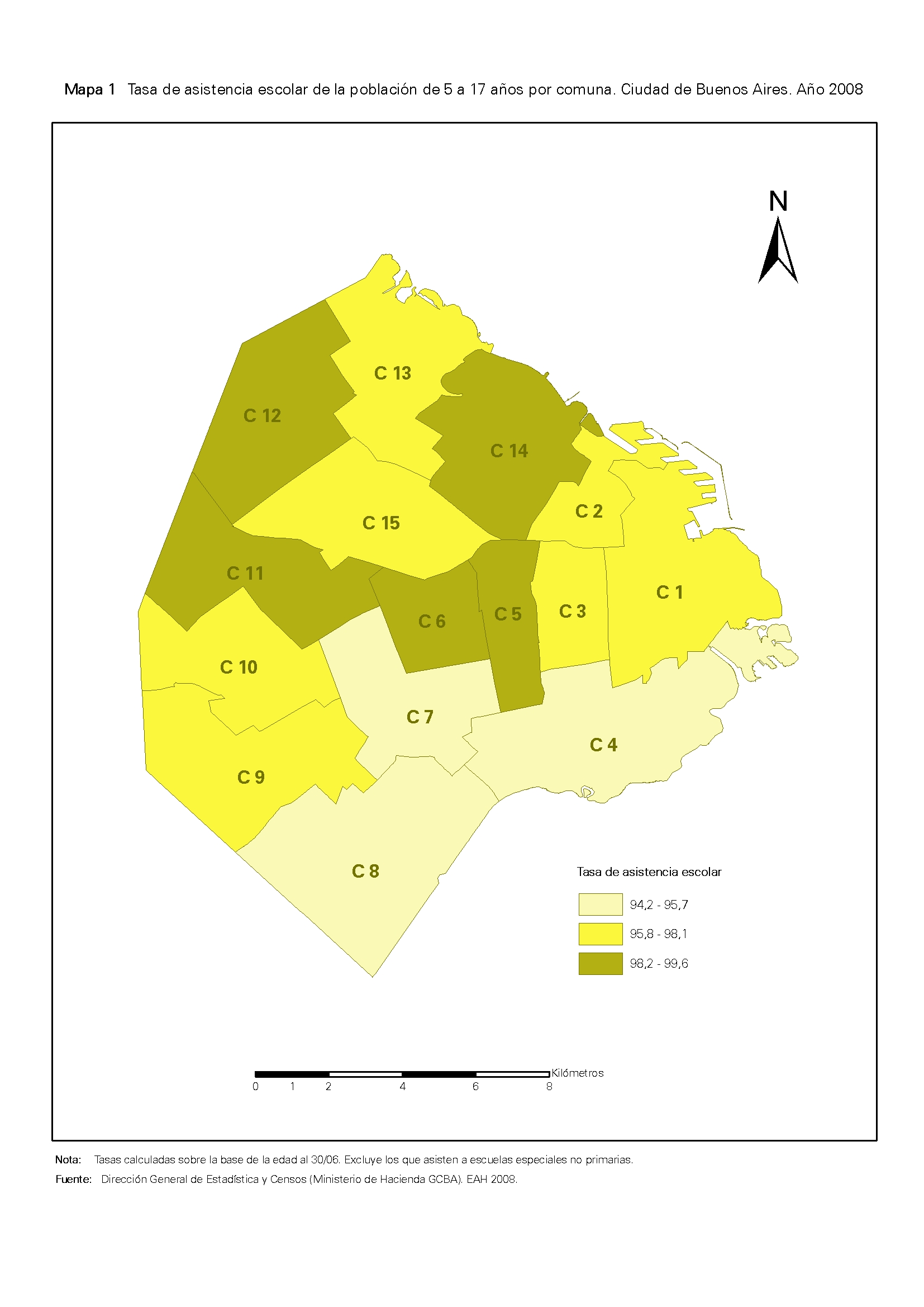 Tasa de la asistencia escolar de la población de 5 a 17 años por comuna. Ciudad de Buenos Aires. Año 2008