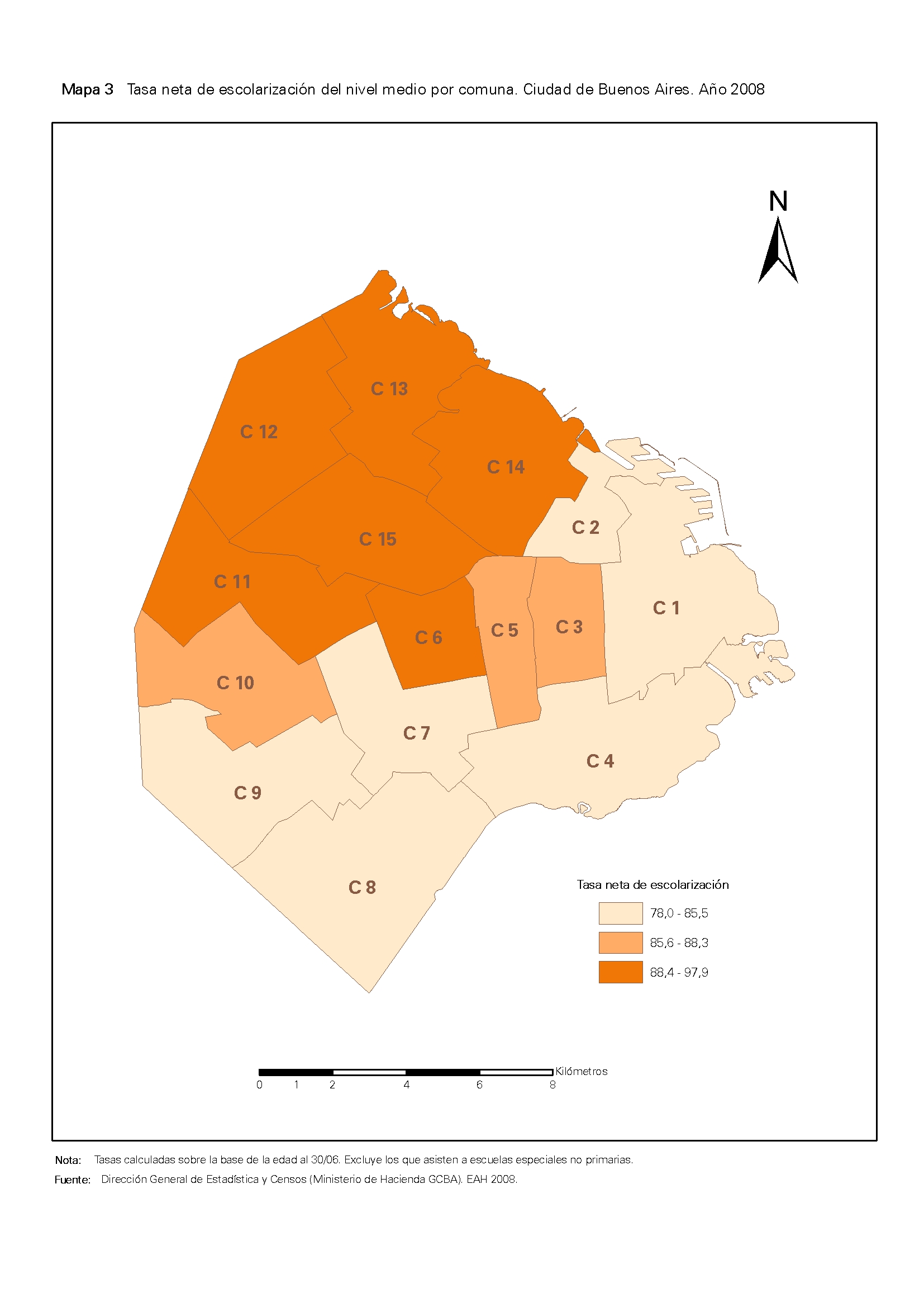 Tasa neta de escolarización del nivel medio por comuna. Ciudad de Buenos Aires. Año 2008