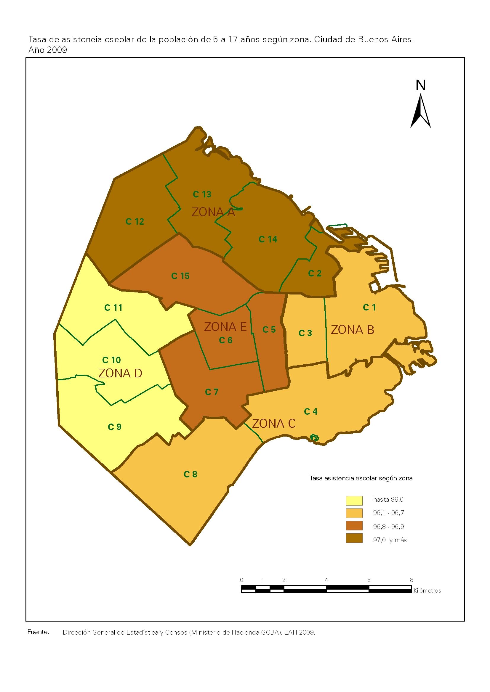 Tasa de asistencia escolar de la población de 5 a 17 años según zona. Ciudad de Buenos Aires. Año 2009