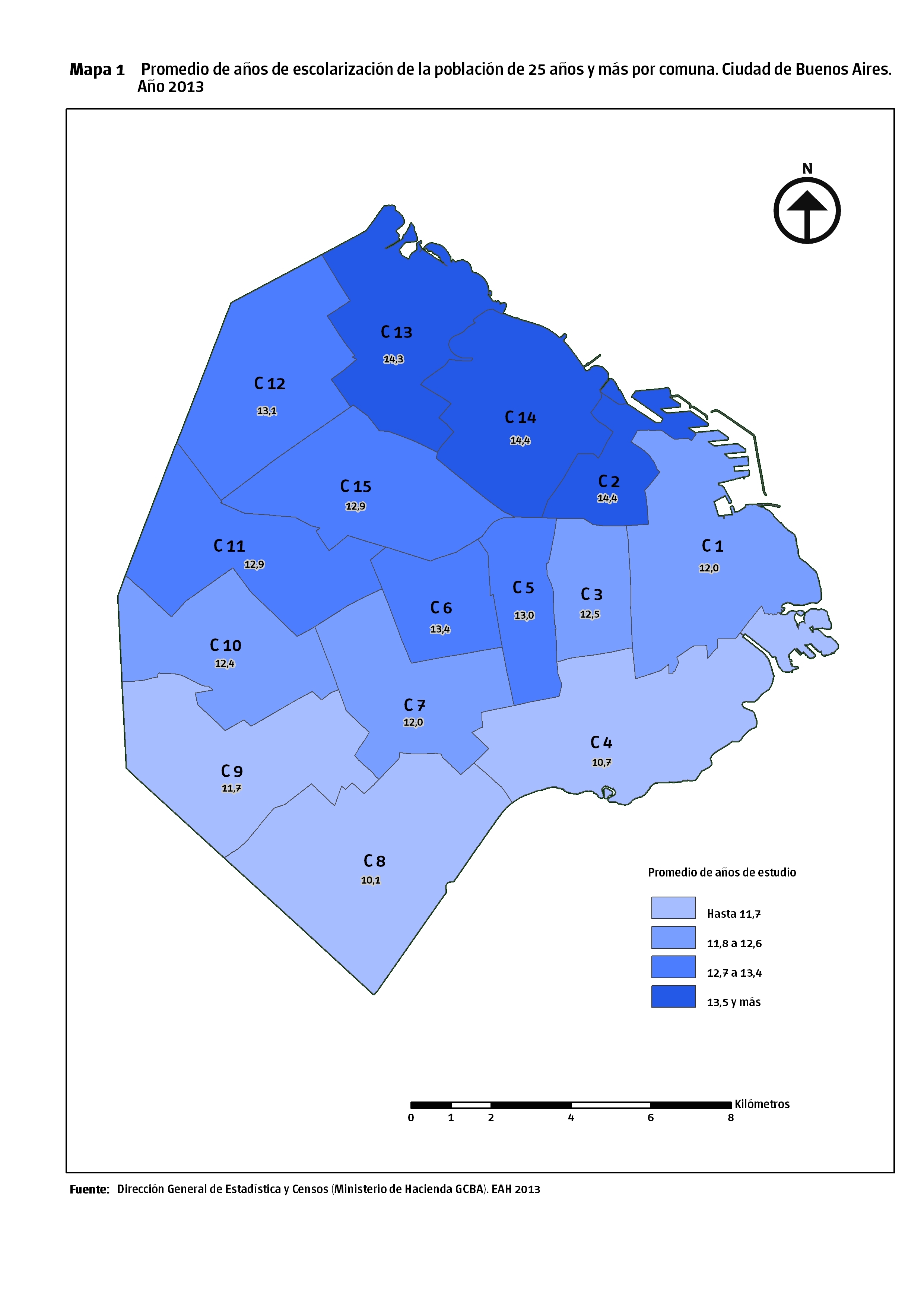 Promedio de años de escolarización de la población de 25 años y mas por comuna. Ciudad de Buenos Aires.Año 2013