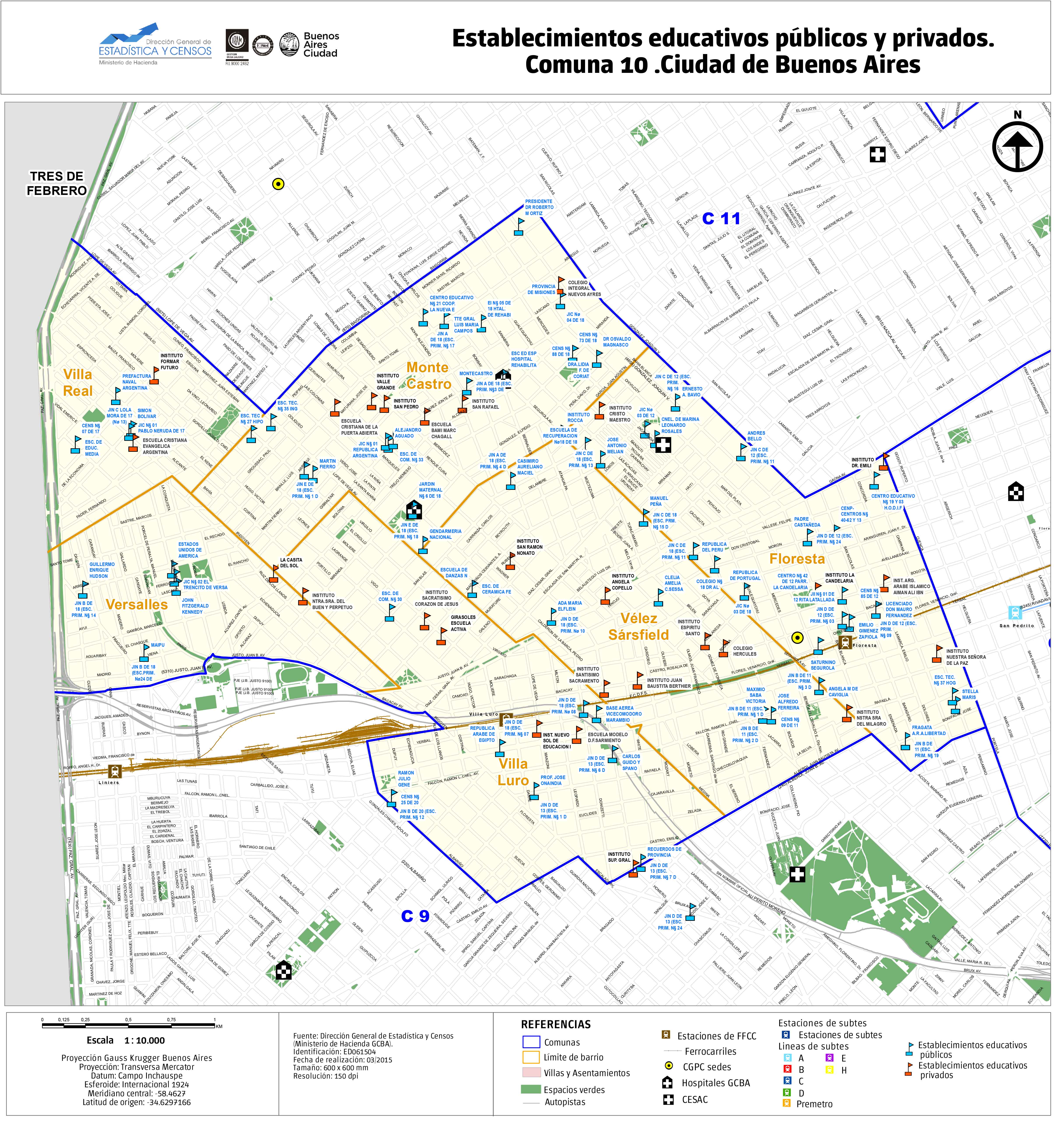 Establecimientos educativos públicos y privados. Comuna 10. Ciudad de Buenos Aires