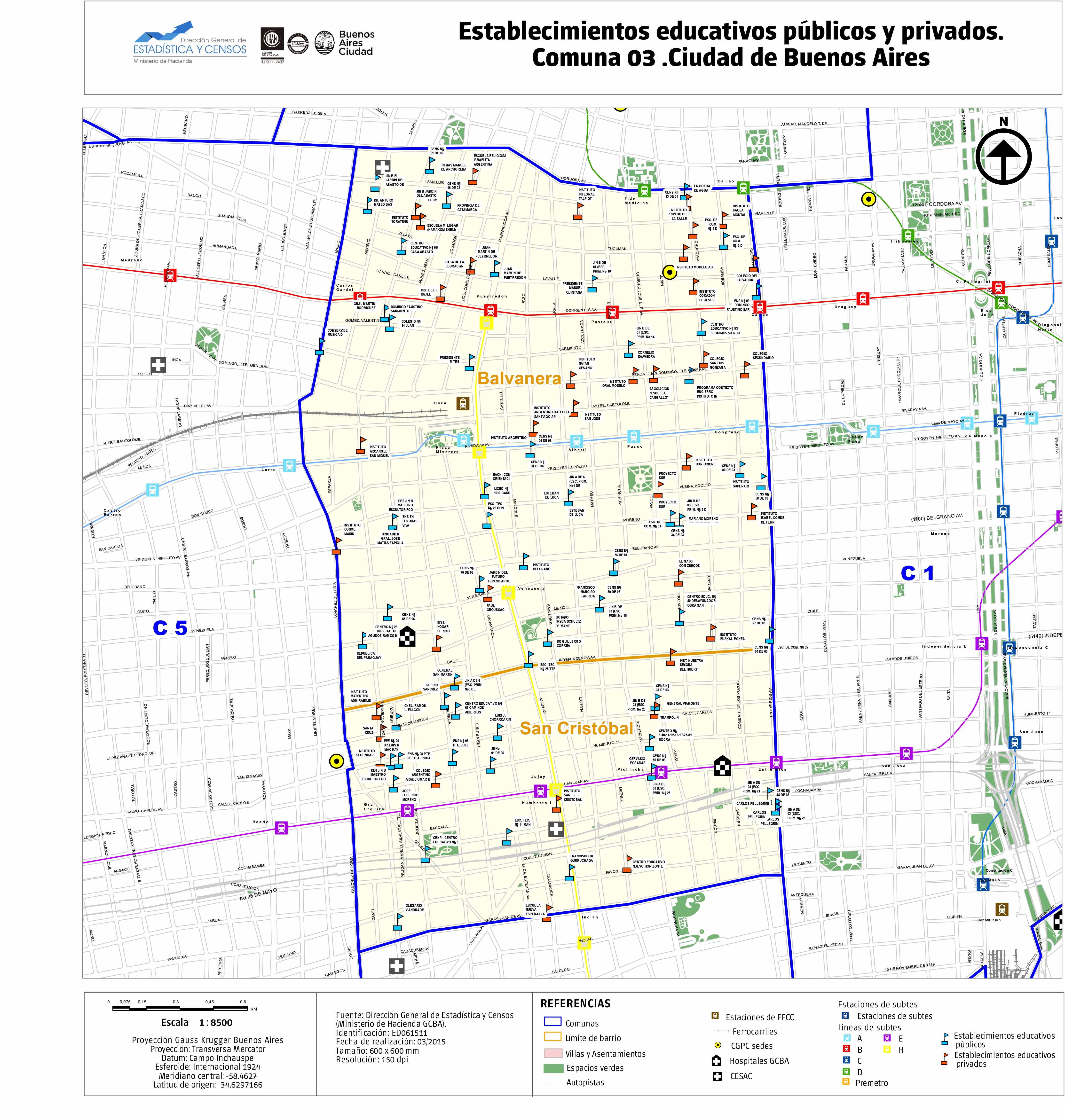 Establecimientos educativos públicos y privados. Comuna 03. Ciudad de Buenos Aires