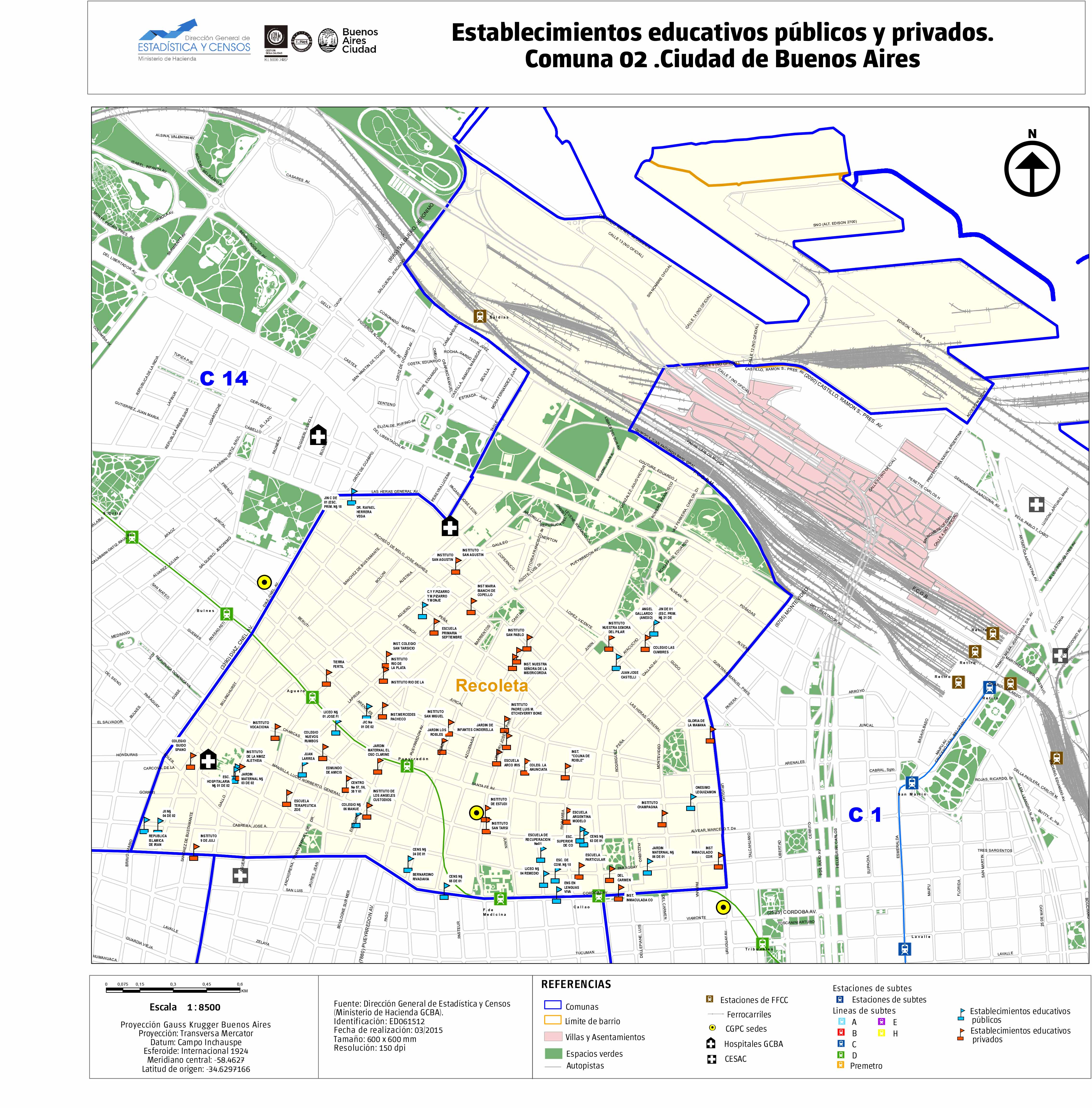 Establecimientos educativos públicos y privados. Comuna 02. Ciudad de Buenos Aires