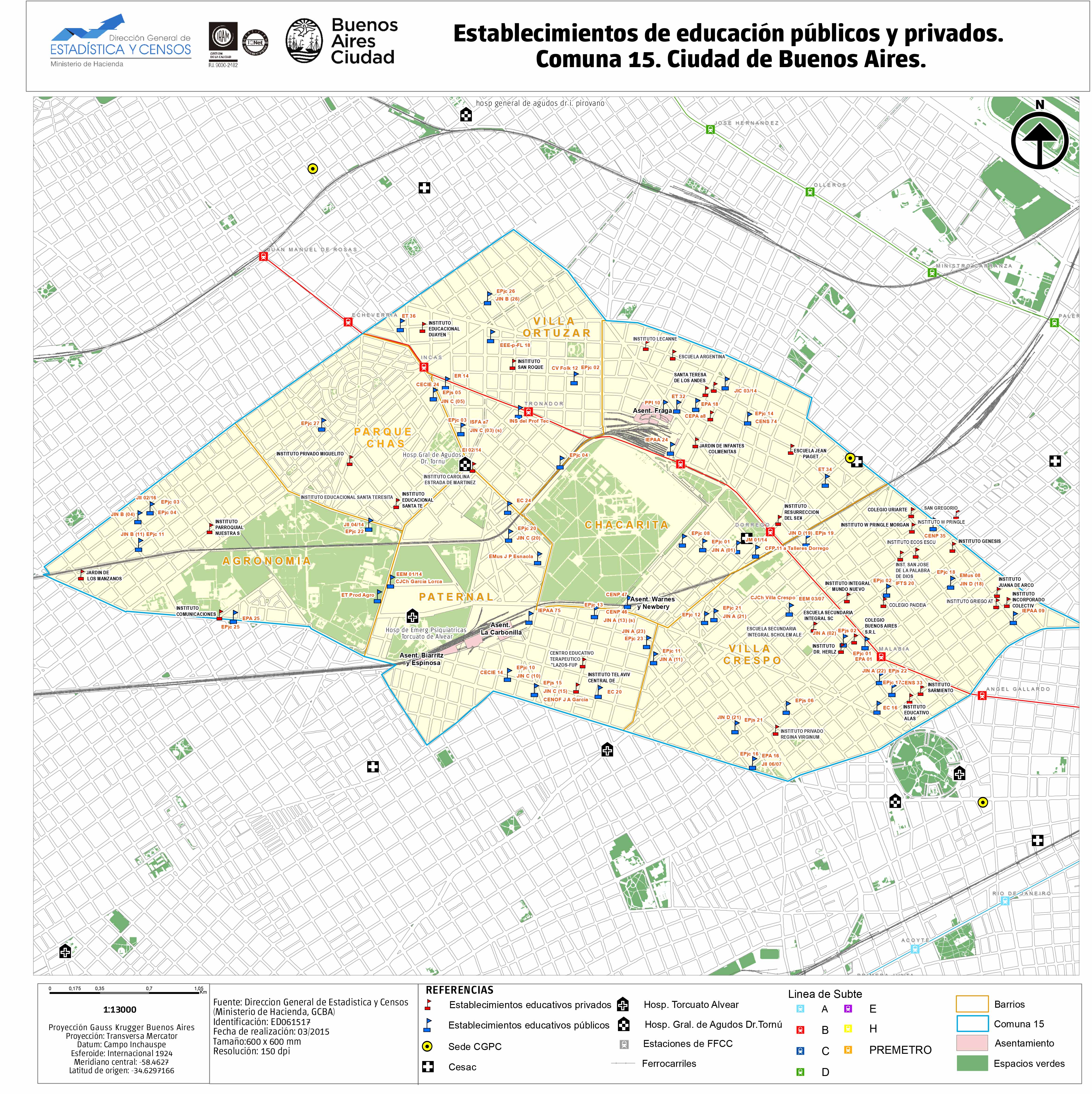 Establecimientos educativos públicos y privados. Comuna 15. Ciudad de Buenos Aires