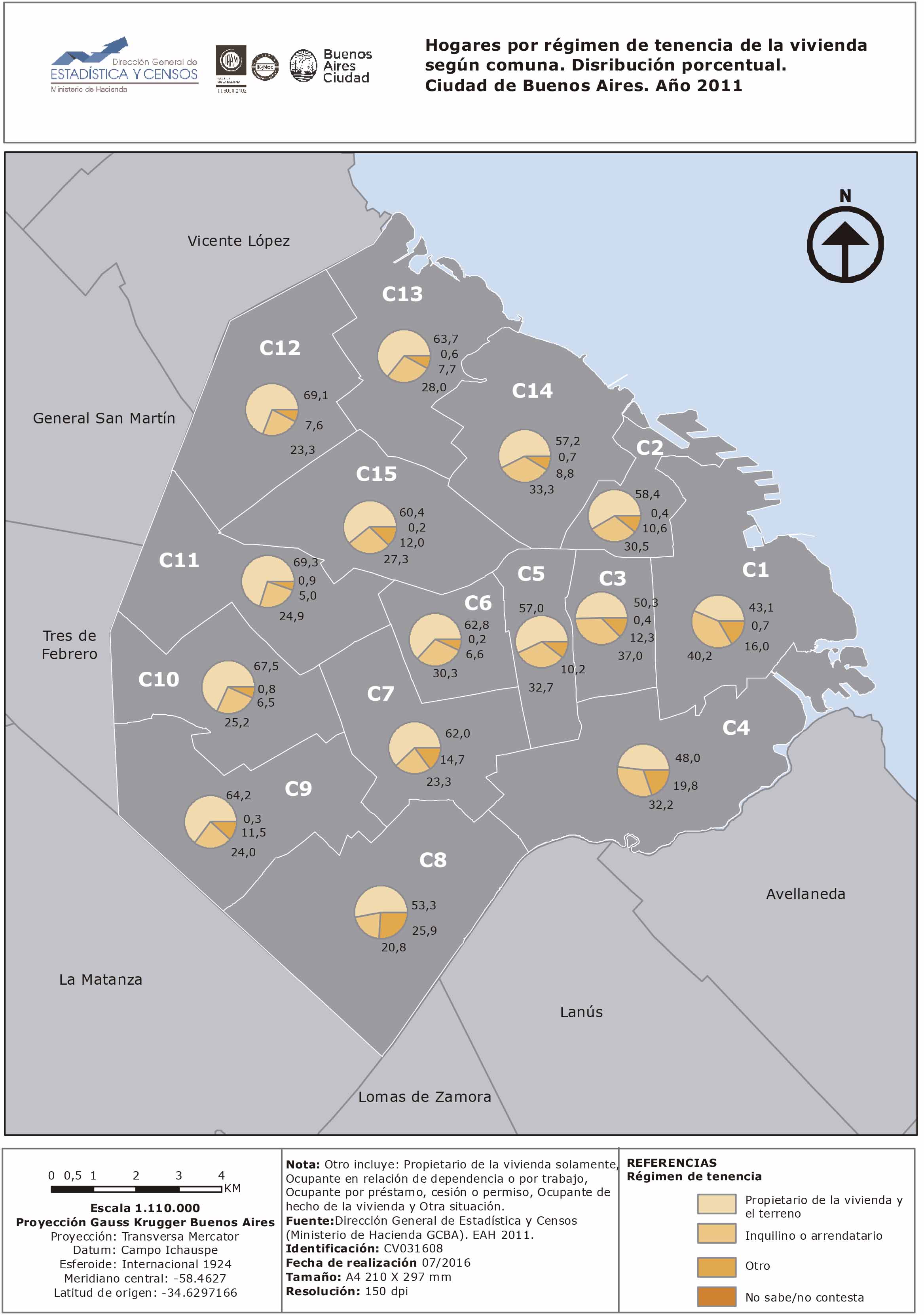 Hogares por régimen de tenencia de la vivienda según comuna. Distribución porcentual. Ciudad de Buenos Aires. Año 2011