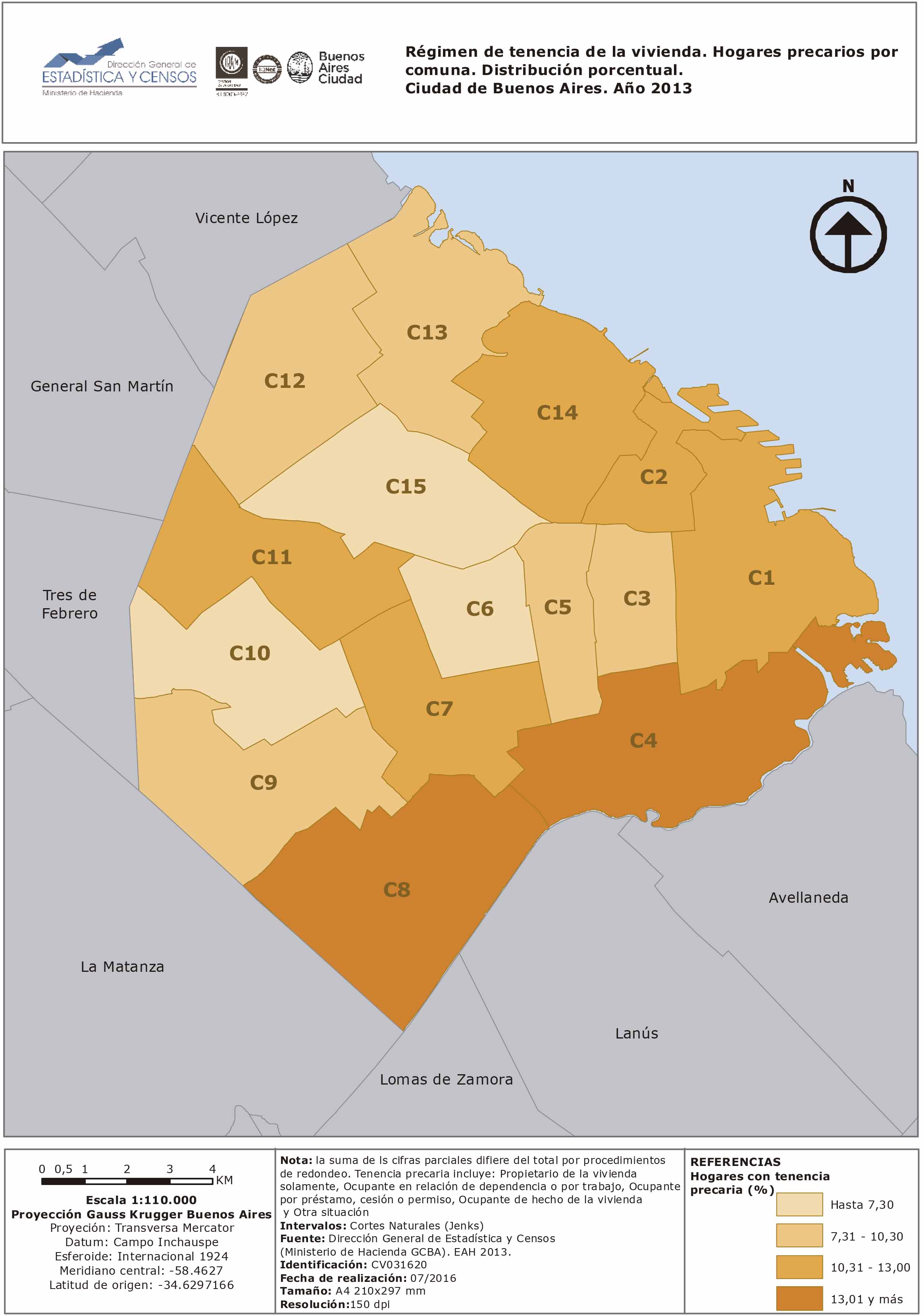Régimen de tenencia de la vivienda. Hogares con tenencia preacaria por comuna. Distribución porcentual. Ciudad de Buenos Aires. Año 2013