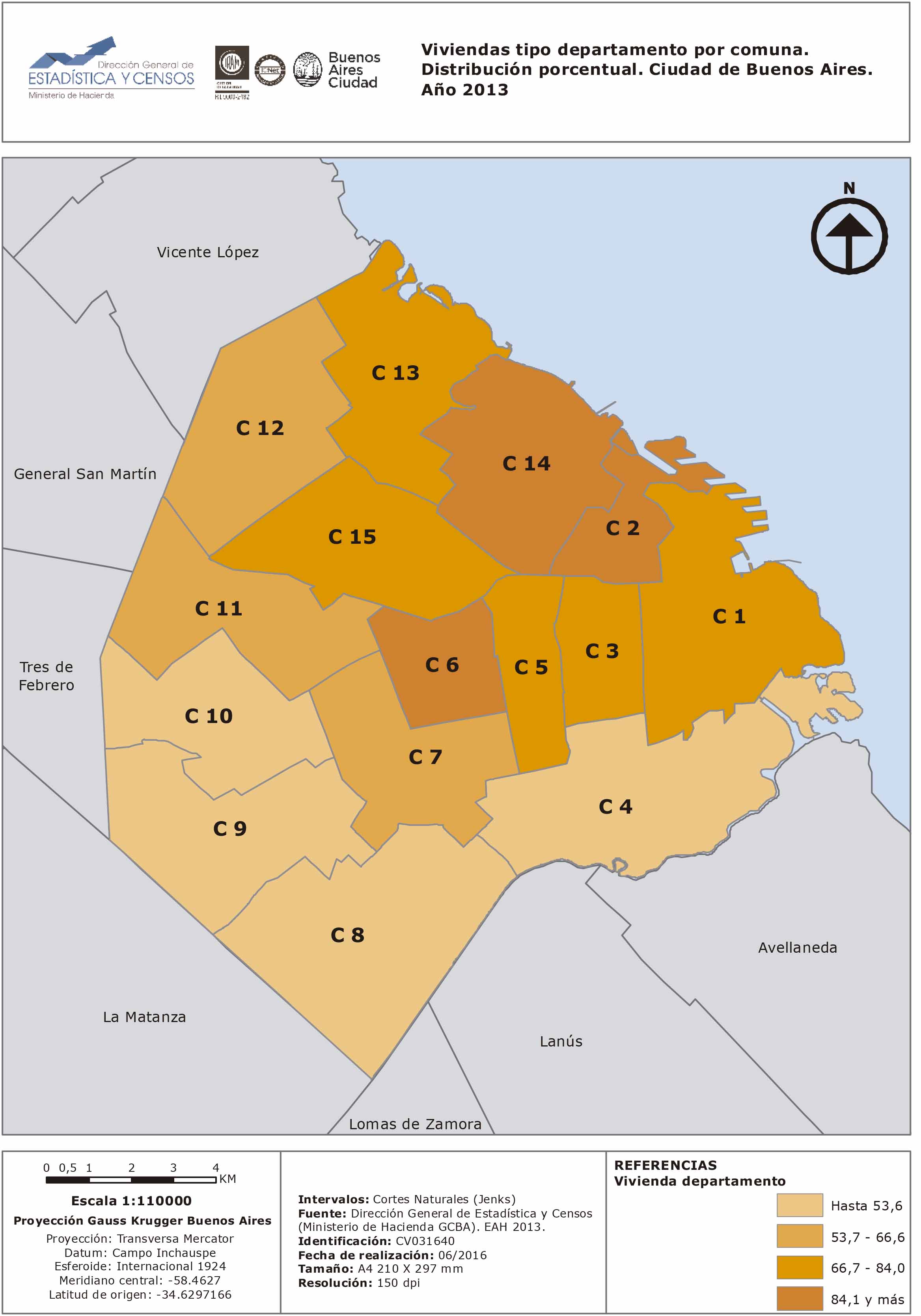 Viviendas tipo departamento por comuna. Distribución porcentual. Ciudad de Buenos Aires. Año 2013